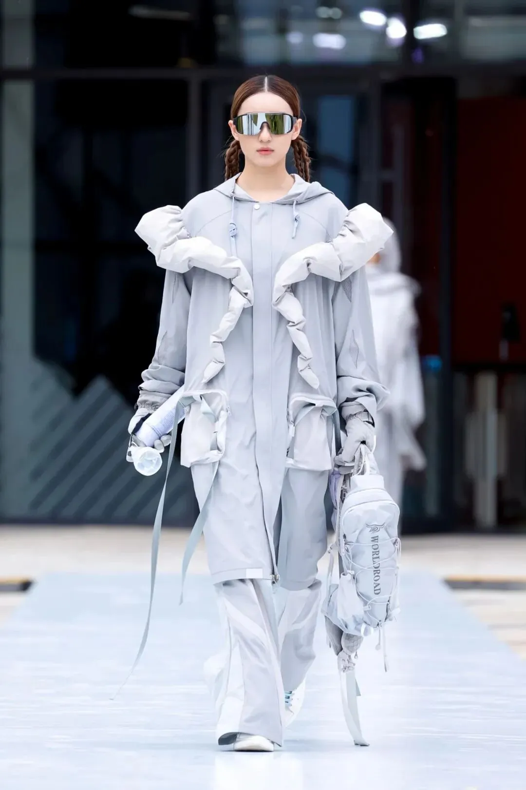 四大创作系列“循迹、漫行、拓境、行域”层层递进,122套原创运动设计作品汇聚成一道流动的风景。北服设计新锐与安踏专业运动理念深度共振,将科技面料、机能剪裁与原创语汇熔铸一体,根植多元运动场景,融合自然户外与都市生活美学,不断突破运动服饰的边界,以年轻化的设计视角,探索功能与美学的共生表达。