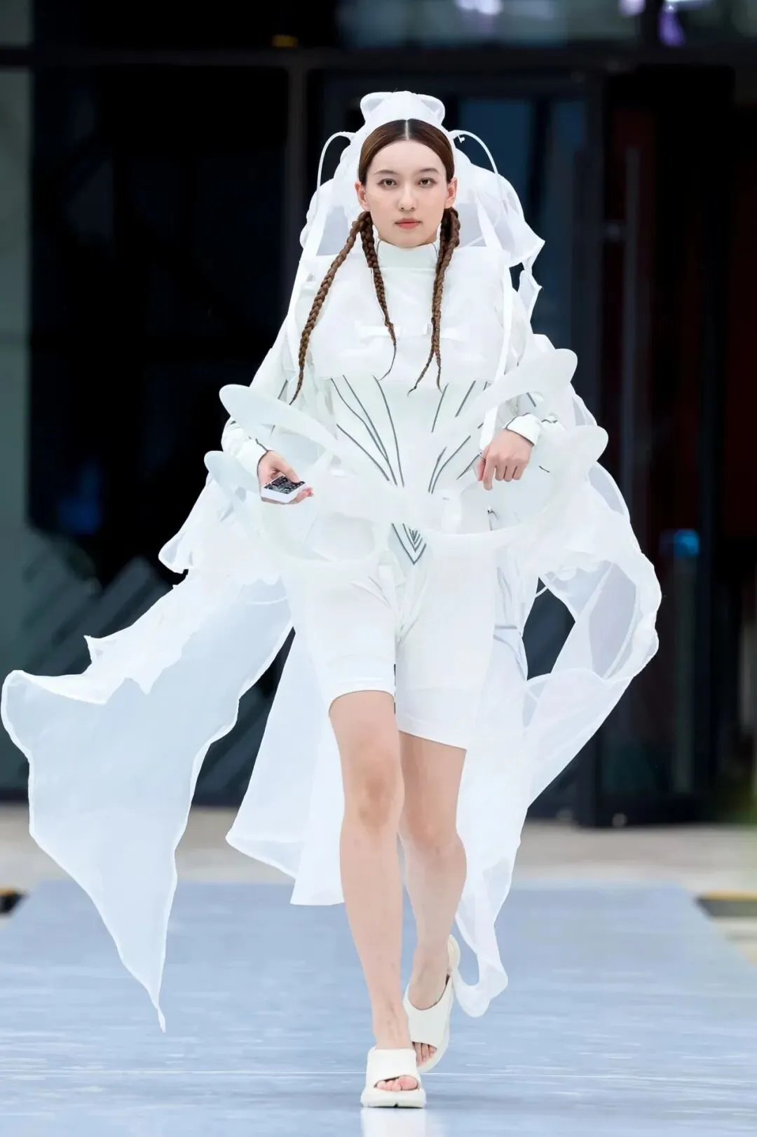 在通州校区开阔的露天T台,运河时尚秀场与张家湾时尚缤纷节交相辉映,2026北服时装周以一场极具张力的开场秀拉开帷幕——服装艺术与工程学院2026届安踏×运动服装设计展演璀璨登场。展演以“循光赴远”为主题,不仅蕴含着同学们对美好生活的向往,更深刻诠释了新时代设计师将科技智造与人文关怀相结合的社会责任感。本场秀演由时尚传播学院表演专业学生进行演绎并参与编导。