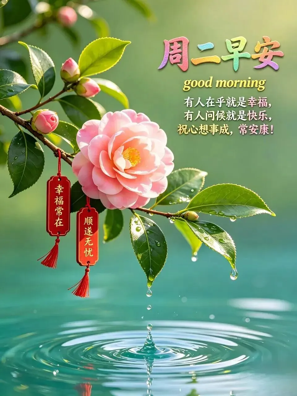 新的一天,愿美丽的阳光☀️美丽你的心情,好运与你相伴行🍀。不忙碌,不烦恼,绽放你的微笑😄,感受生活的美好🌈,把幸福紧紧拥抱🤗,周二早上好!