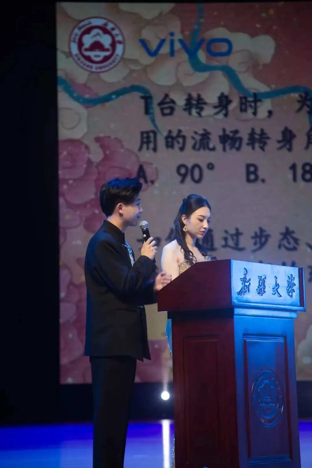 衣袂翩跹展东方雅韵,步履铿锵绽青春风华。从优雅台步到文化展示,从气场展现到内涵表达,新大学子登台闪耀,尽显新时代青年的自信、朝气与担当。