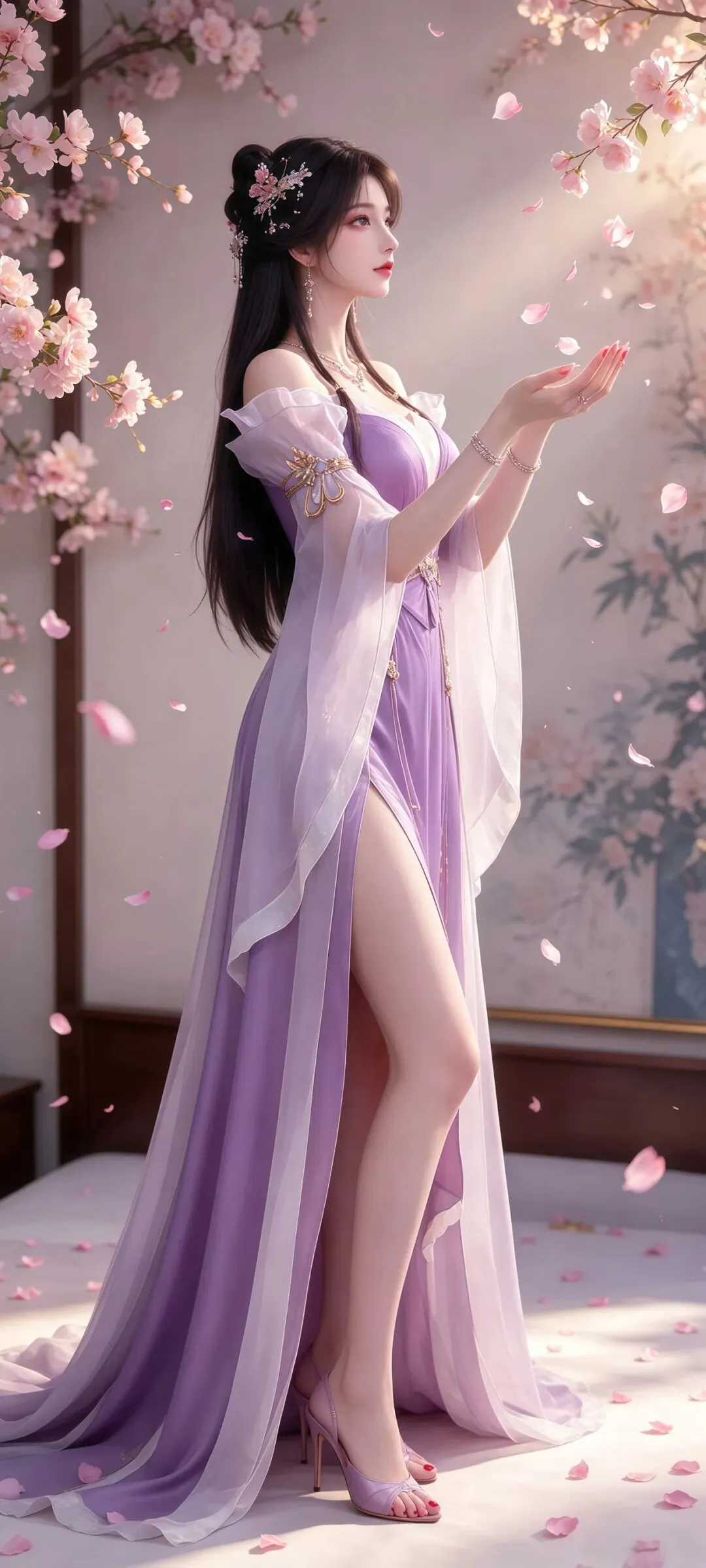 这组壁纸的核心魅力,在于精准捕捉了姬紫月的灵动特质,并将其与东方古典审美深度融合,让独属于中式少女的灵动美感在画面中得到了自然又鲜活的完整呈现。姬紫月的人物塑造始终贴合国风审美的核心表达,眉眼神态间既有少女的娇俏灵动、明媚鲜活,又带着世家贵女的温婉气韵与纯粹风骨,摒弃了浮夸刻意的视觉表达,以鲜活灵动的神态传递东方审美独有的意境之美。服饰设计上深度挖掘传统国风元素,灵动的古风裙摆搭配精致的传统云纹、瑞兽纹样,线条流畅自然,既符合角色的世家仙门人设,也延续了中式服饰的古典韵味,每一处剪裁与纹样都服务于人物灵动气质的表达。画面构图借鉴了中式传统美学的灵动构图逻辑,人物主体与背景场景的搭配张弛有度,既突出了人物的鲜活形象,也让画面拥有了充足的呼吸感与想象空间,将中式美学的灵动意境与现代动画技术结合,让角色的灵动美感有了更具感染力的呈现形式。