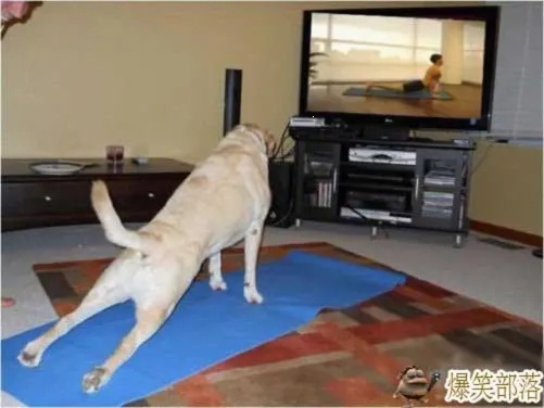这二货汪星人大清早的起床练瑜伽,估计是要练好身材泡妹纸。