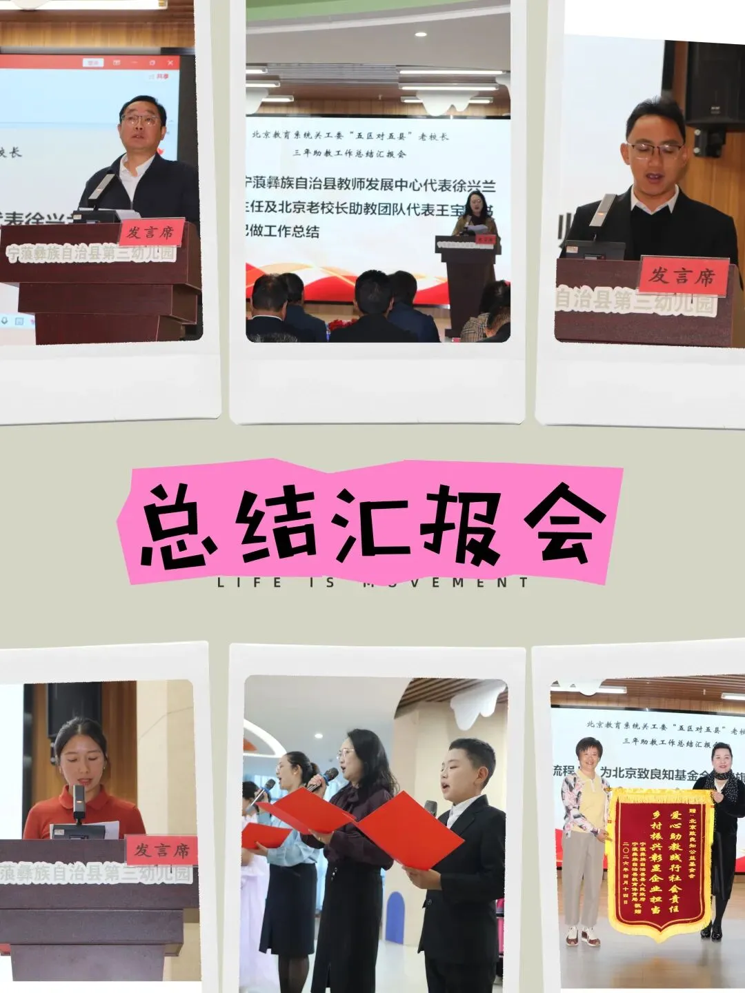 4月17日上午,宁蒗支教总结汇报会在三幼多功能室举行,现场播放三年支教短片,师生代表分享感言,学生表演了《感恩有您 情暖凉山》。
