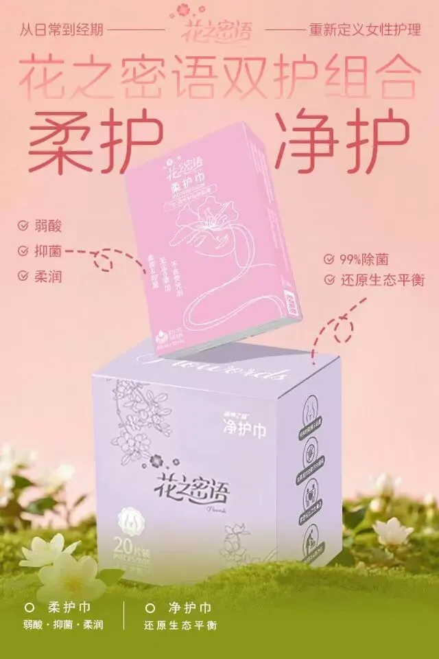 花之密语健康生活管理专家温馨提示:女神的每一天,都值得被用心呵护。日常有柔护巾的细腻陪伴,经期有净护巾的坚实守护,花之密语双护组合,以科学温和的方式,守护你的每一刻自在。