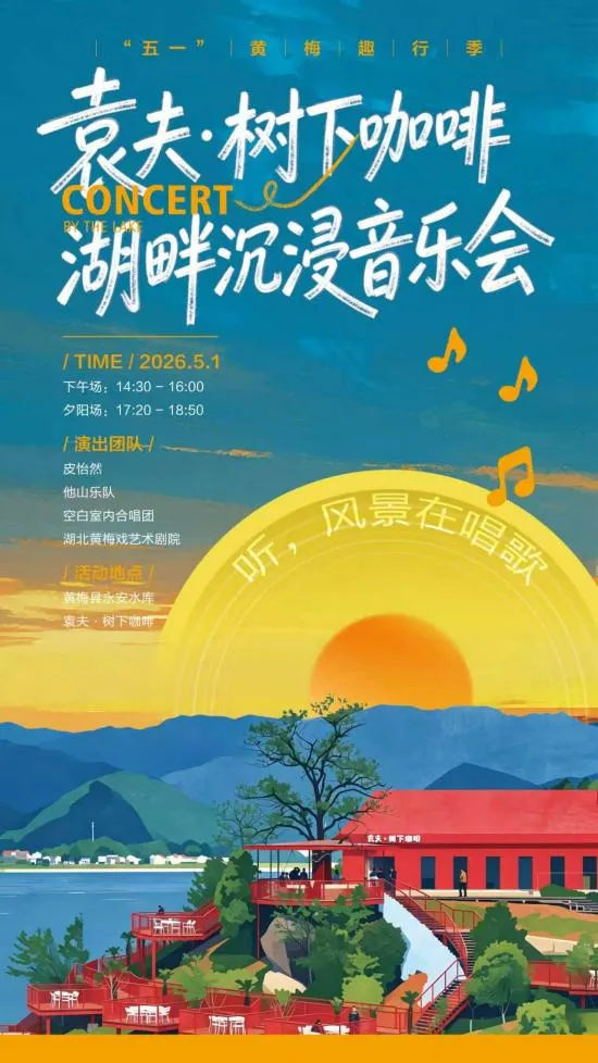 黄梅作为黄梅戏故乡、禅宗发祥地,近年来以“文化+生态+交通”推进全域旅游,袁夫稻田、东山问梅村等已成网红地标。本次音乐会选址永安水库“树下咖啡”,正是黄梅农文旅融合的最新“代表作”。