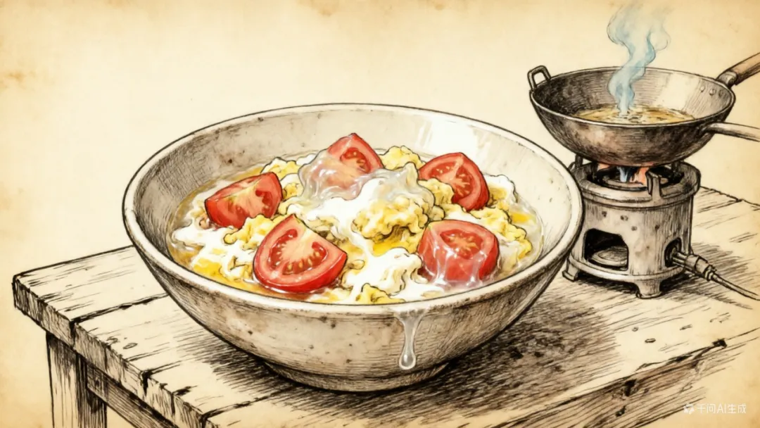 赵叔对八面煎鱼的美味一带而过,仍然执着地推销他的番茄炒蛋。认为这个菜做得好,好就好在“吃得到番茄,鸡蛋也够嫩”。一边说,一边不停大勺舀到我碗里,分享他的得意之作。整道菜没怎么调味,盐不够,连温度都不够,几乎是冷的。碗里的番茄块上还带着青白色的梗,咬开时一股生涩的酸气,混着鸡蛋未熟透的腥膻,在舌尖上混合成一种难以下咽的滋味。我苦着脸好不容易才慢慢扒拉出一个窝窝,躲闪不及,赵叔一勺菜又舀过来,又堆尖了,心里那个懊恼啊!赵叔期待又灼热的目光轮流在我父子俩的脸上扫射,希望收获意料之中的赞美。不会作伪的我只有低着头,不敢看赵叔的眼睛。父亲看起来一副不以为意的样子,但喉结上下滚动了一会,像是做好了心理建设般,随即大口吃菜,大口扒饭,跟赵叔一顿尬聊,但始终没有说出那个赵叔期待的“好”字来。