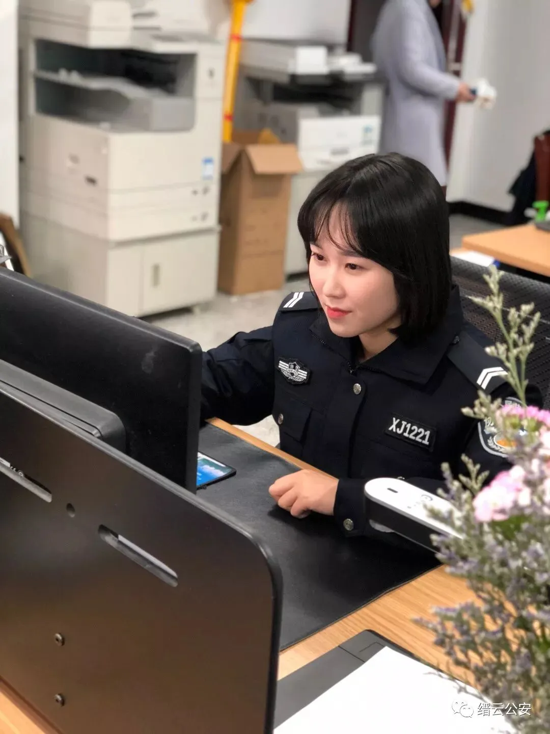 园区分局窗口工作人员。窗口是公安机关联系群众的纽带,是公安工作的门面,代表着缙云公安的第⼀形象。虽然窗口工作量大而且琐碎,但在你我眼中的小事,对群众而言或许就是大事;有些事情,对于我们来说或许只是举手之劳,却真切地帮群众了却了困扰。