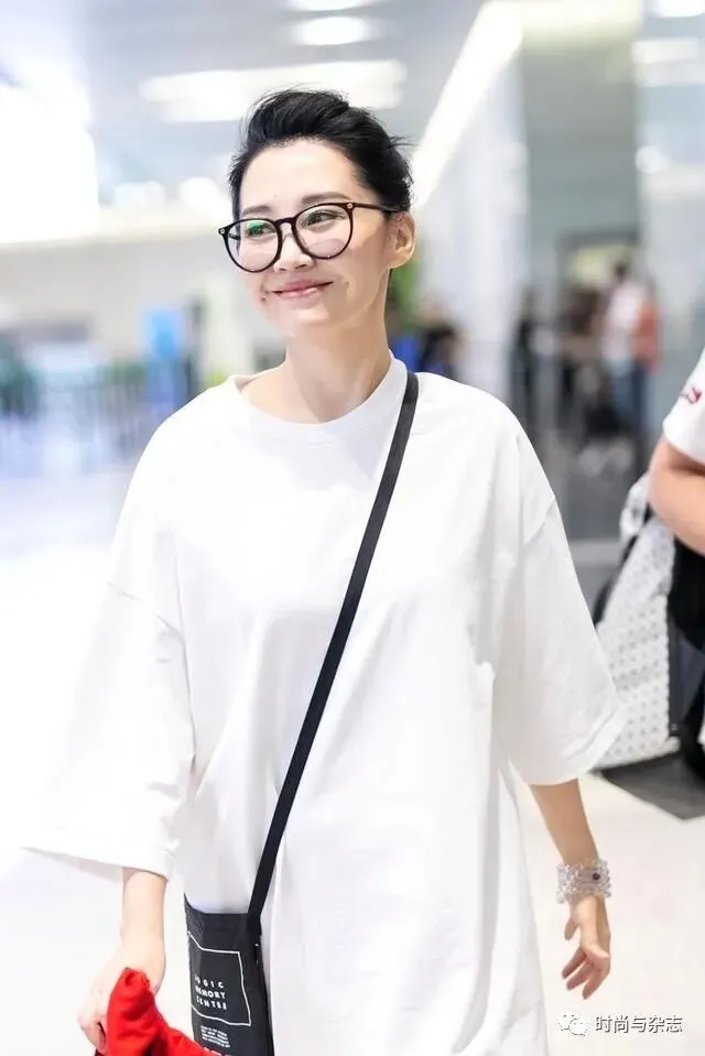 许晴真是冻龄女神,穿长款白色T恤走机场减龄时髦,气场全开
