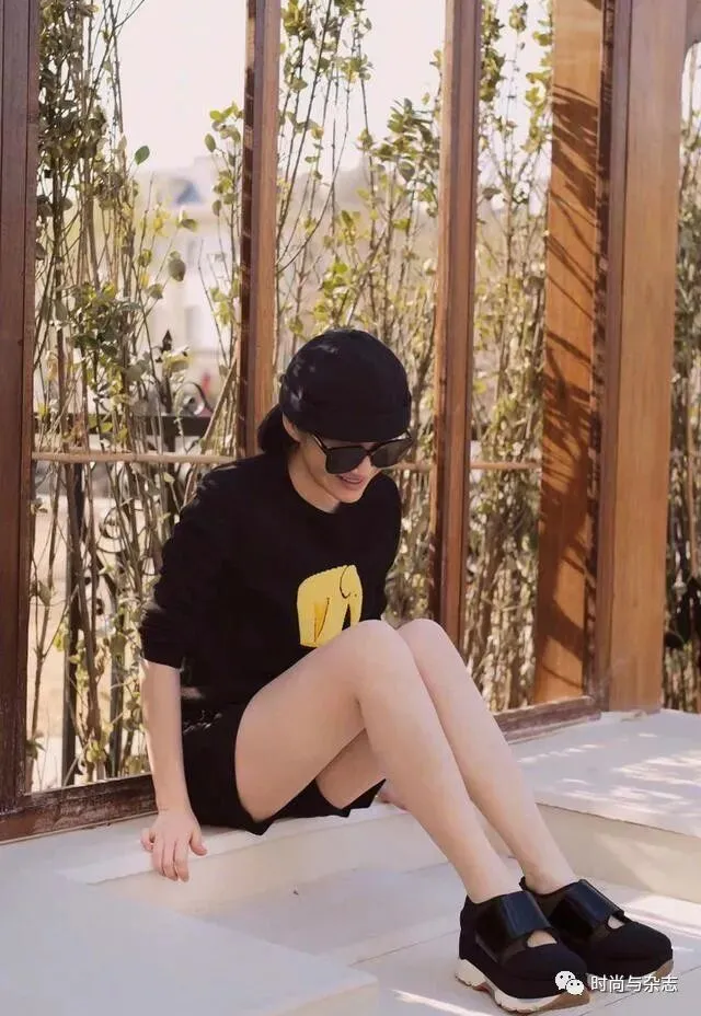 黑色卫衣搭配黑色短裤,露出了纤长白皙的双眼,看上去愈发的抢眼吸睛,整个人也更显运动活力的气质,针织的黑色帽子也是活力满满,整套look宛若二八少女一般。