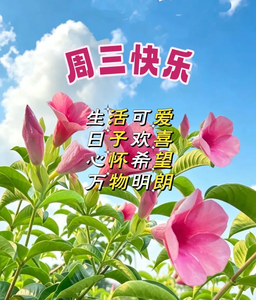 周三早安!愿你在这个新的一天里,拥有一颗平静而善良的心,用你的笑容去改变这个世界,别让这个世界改变了你的笑容!愿你的每一天都充满爱和希望!