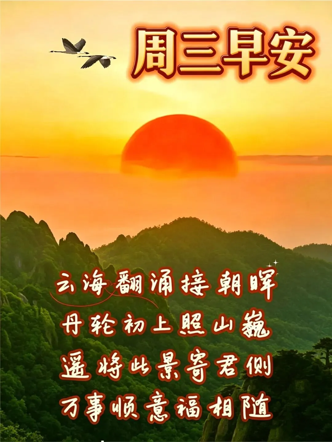红日冉冉升起,万物缓缓苏醒,问候如约而至,送上真挚心意,时时开开心心,天天平安好运,永远健康幸福!周三愉快!
