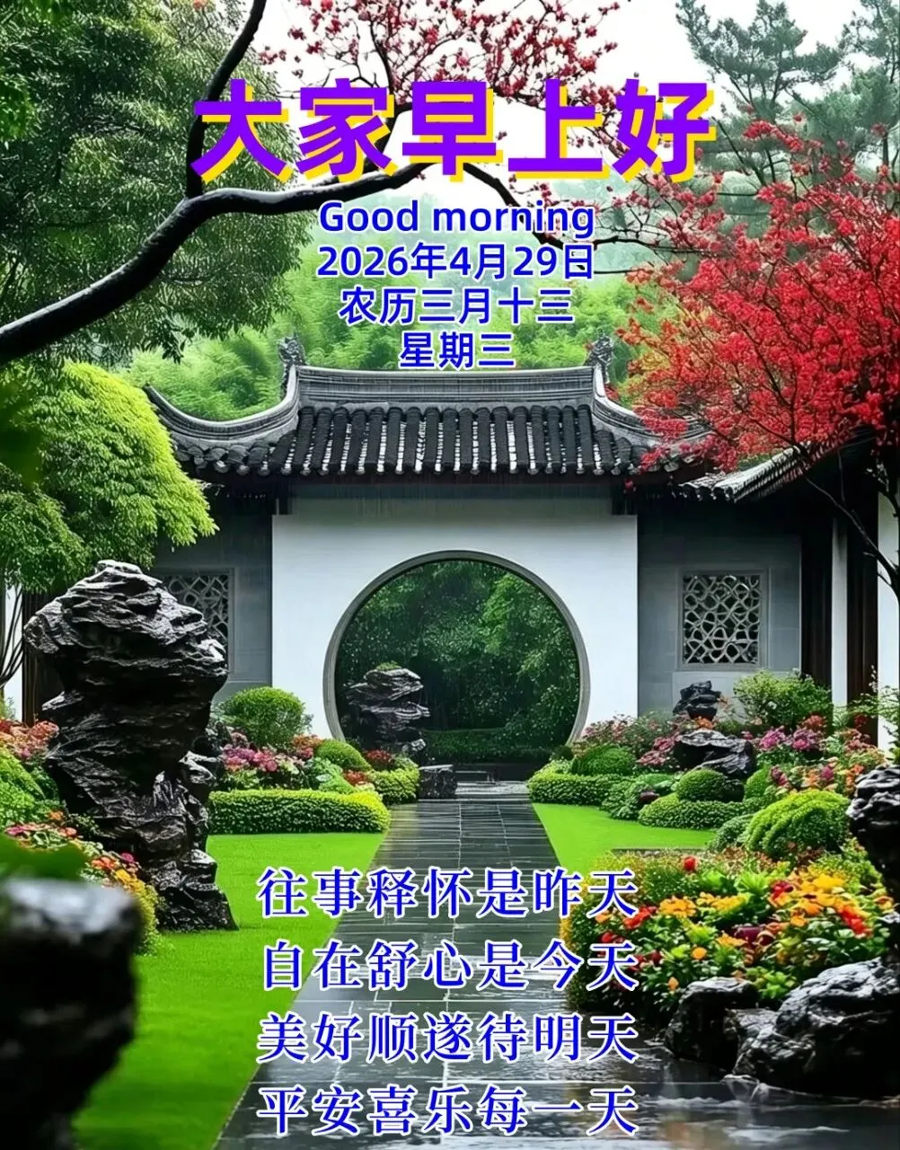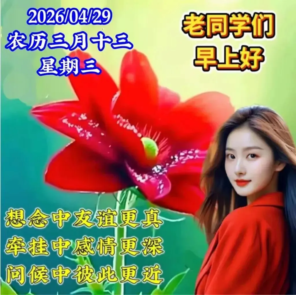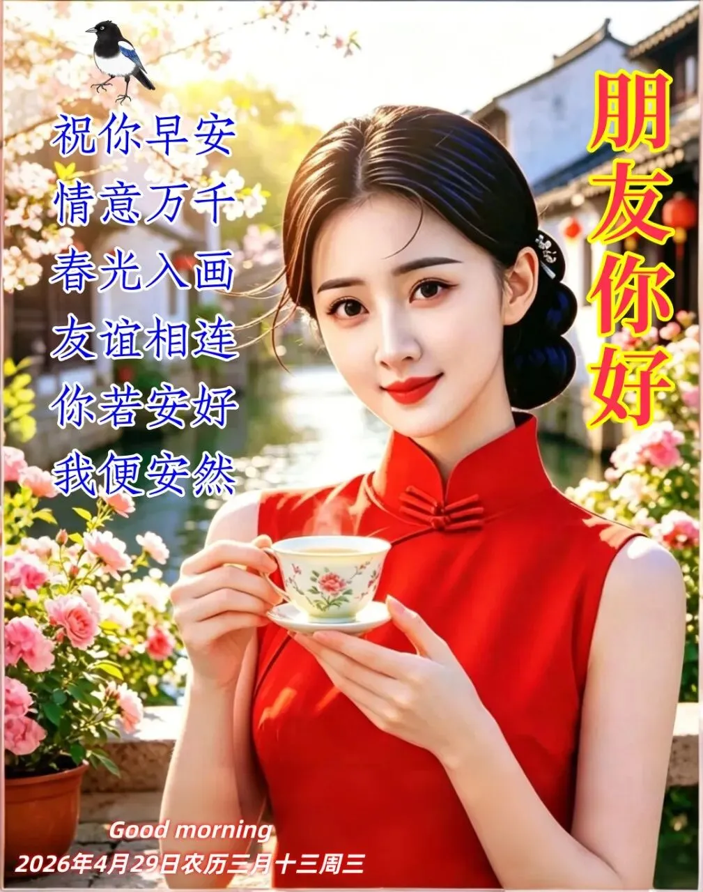 当前位置:首页>美女资讯>2026年4月29日周三早安图片,一声问候:有情有意,有祝福.愿我们健康平安到永久