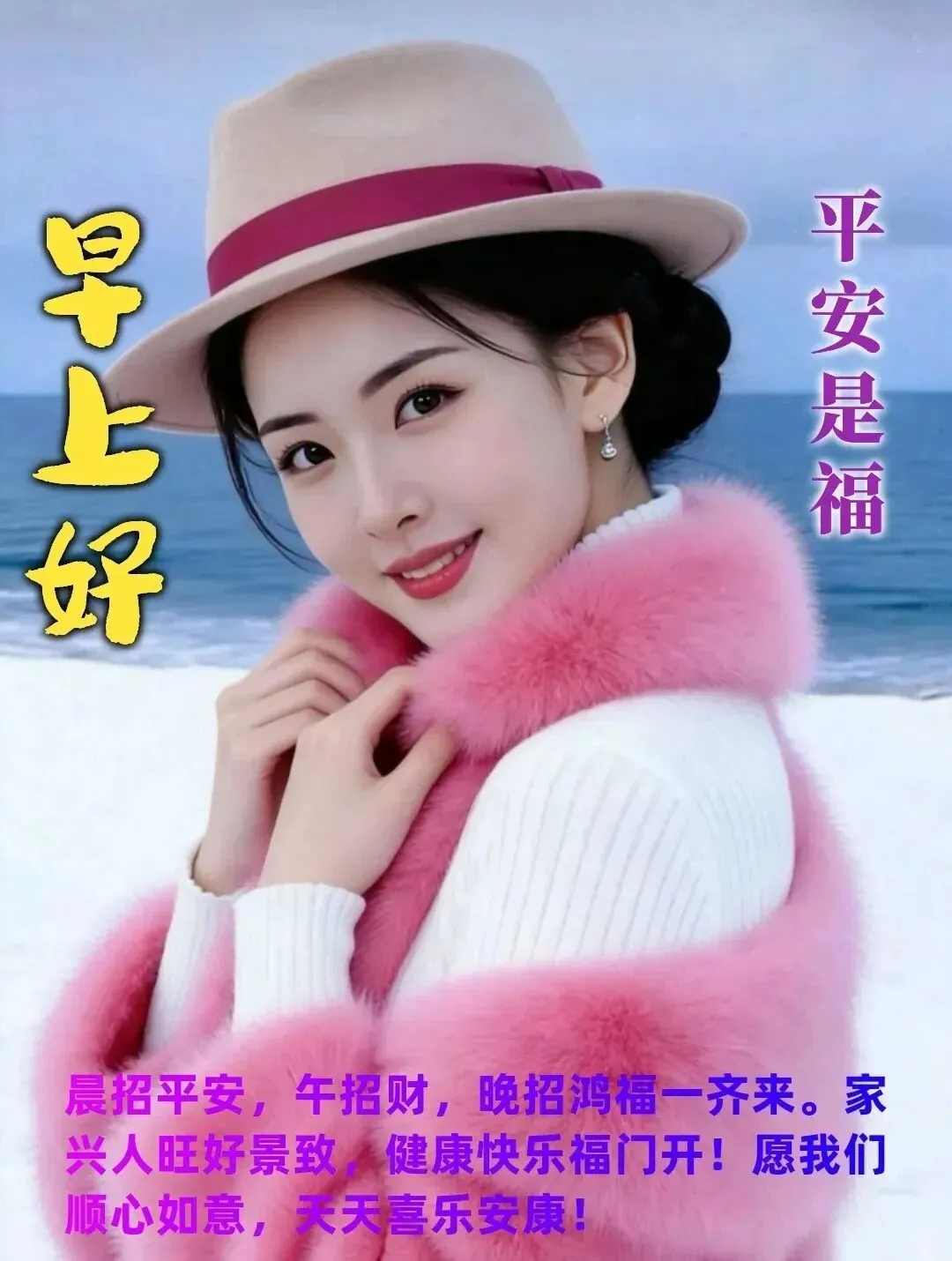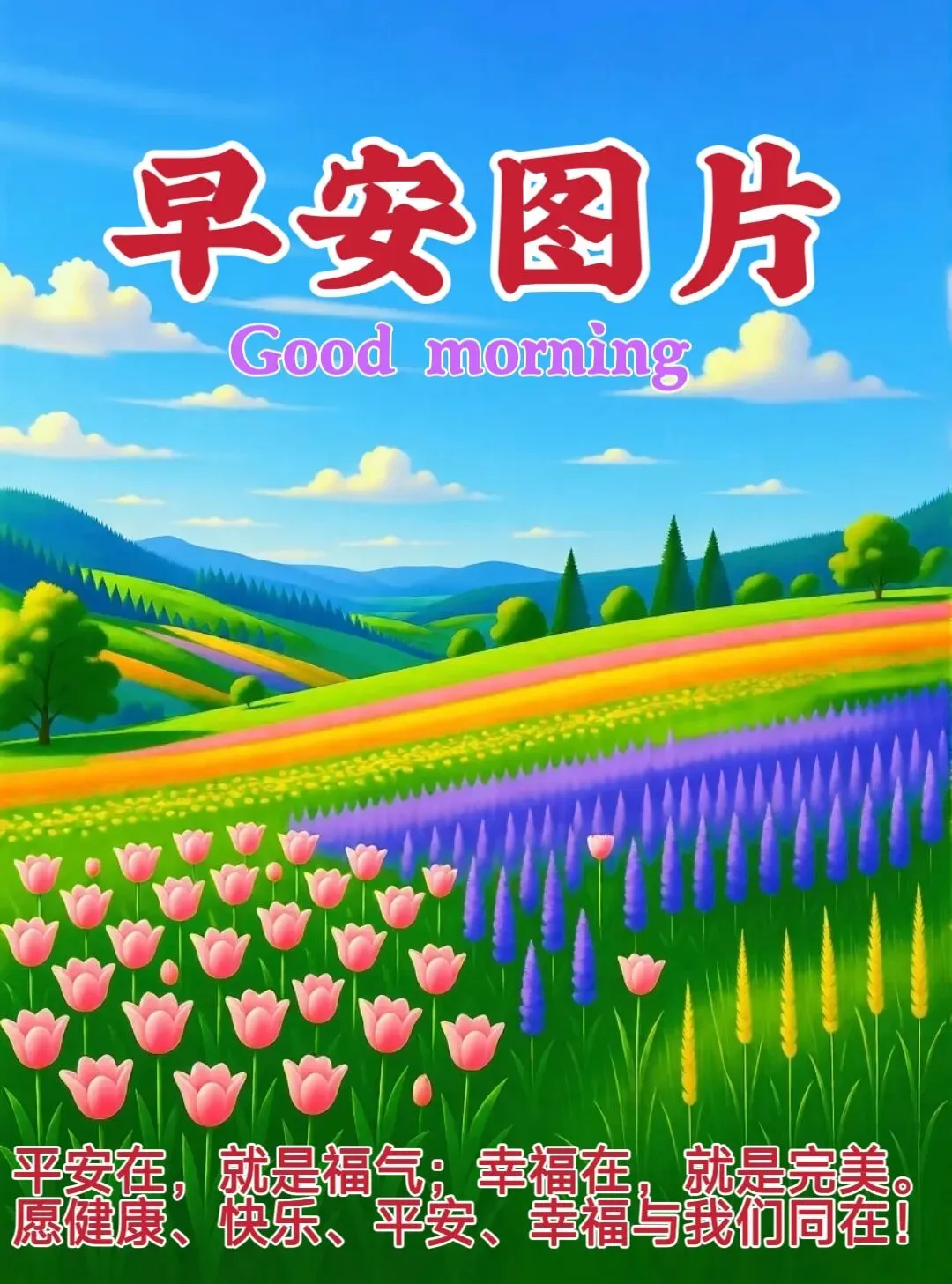 早安!清风拂面晨光照,问候送到心意到,身体无恙是财富,家庭和睦是珍宝,心态年轻永不老,快乐天天来报到,早安吉祥,愿你事事顺心,步步登高!