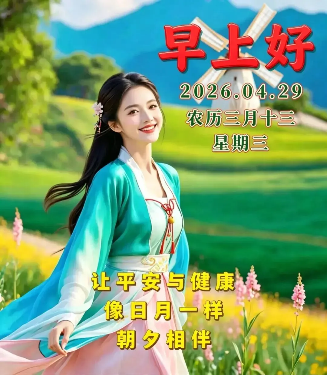 2026年4月29日周三早安图片,一声问候:有情有意,有祝福.愿我们健康平安到永久