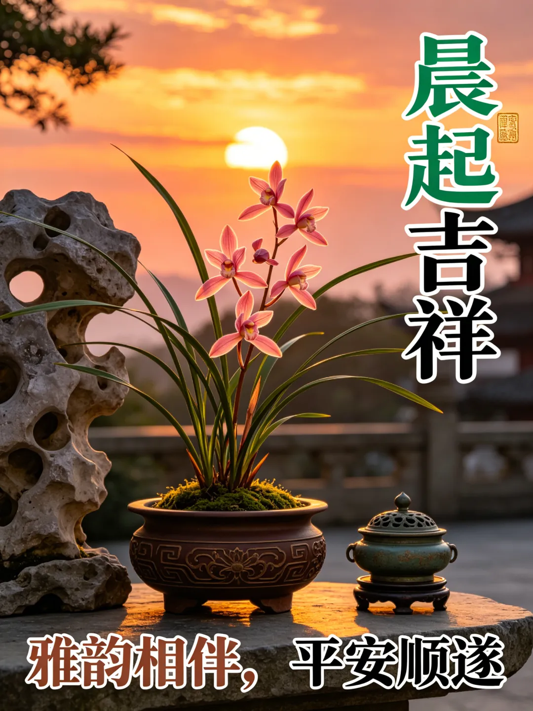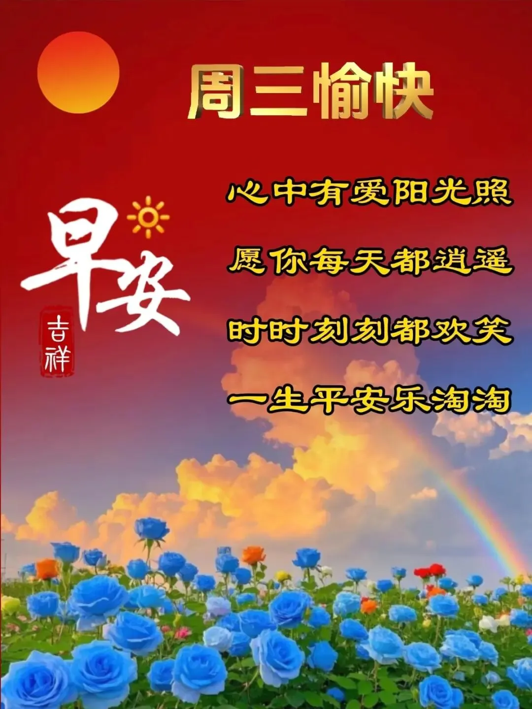 🌹🙏❤️晨钟敲醒福星眸,暮鼓擂动吉运留;午阳暖照身无恙,夜月清辉梦无忧;岁岁年年千帆顺,笑颜常伴到白头。早上好!☕️🎉