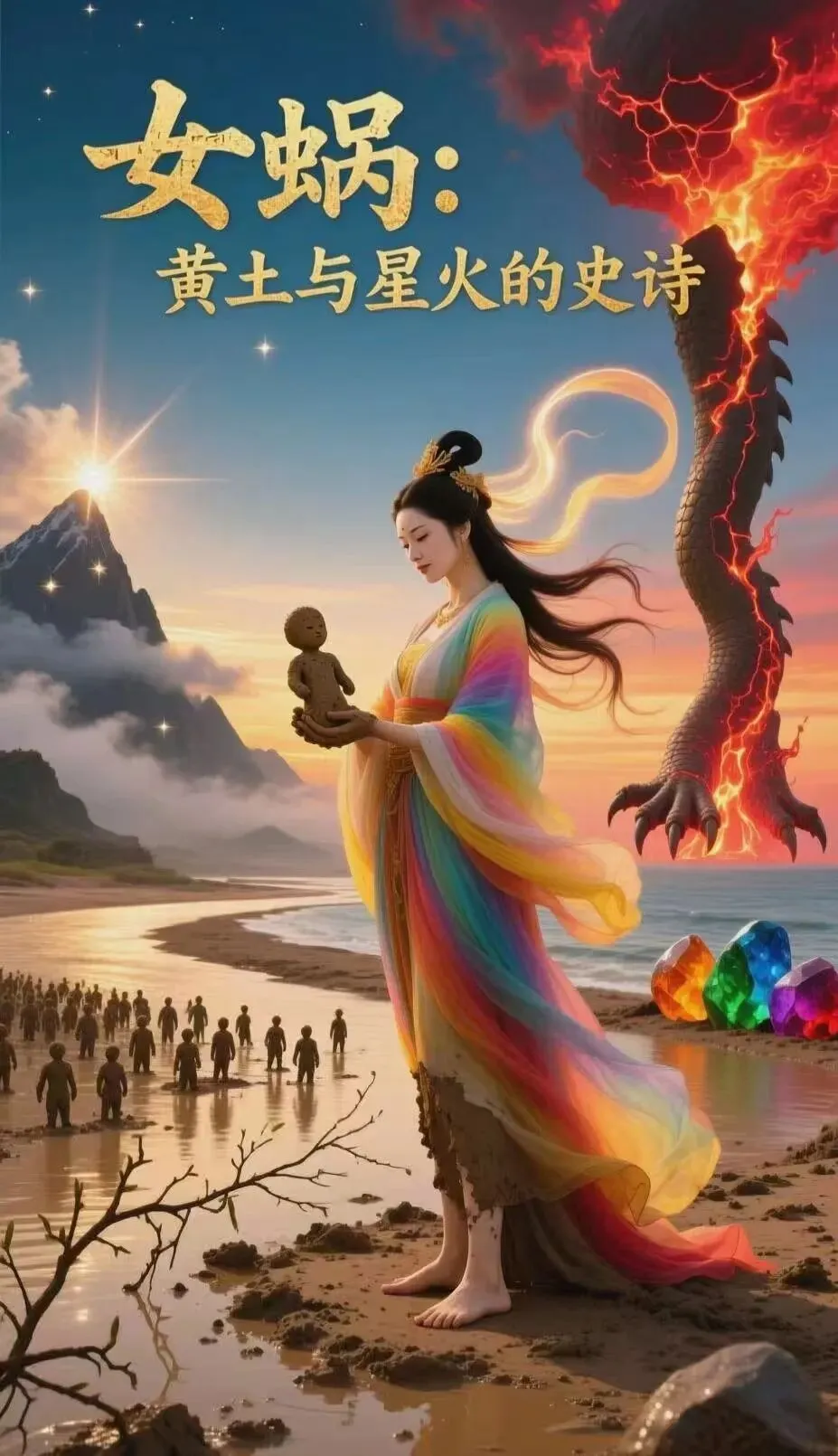 天破了,女娲仰望苍穹,那巨大的窟窿如一张狰狞的嘴,不断喷吐着天河之水,必须补天,否则人间将彻底毁灭。