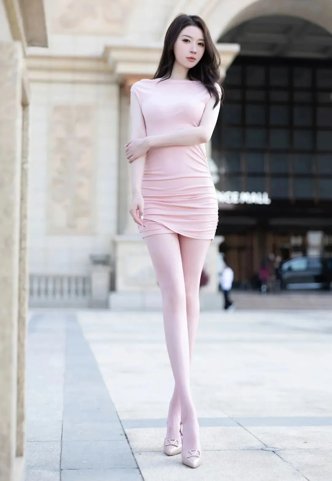 淡粉色连衣裙,搭配淡粉色丝袜,脚踩肉色高跟凉鞋,这一身搭配看上去太诱人了。 ▼