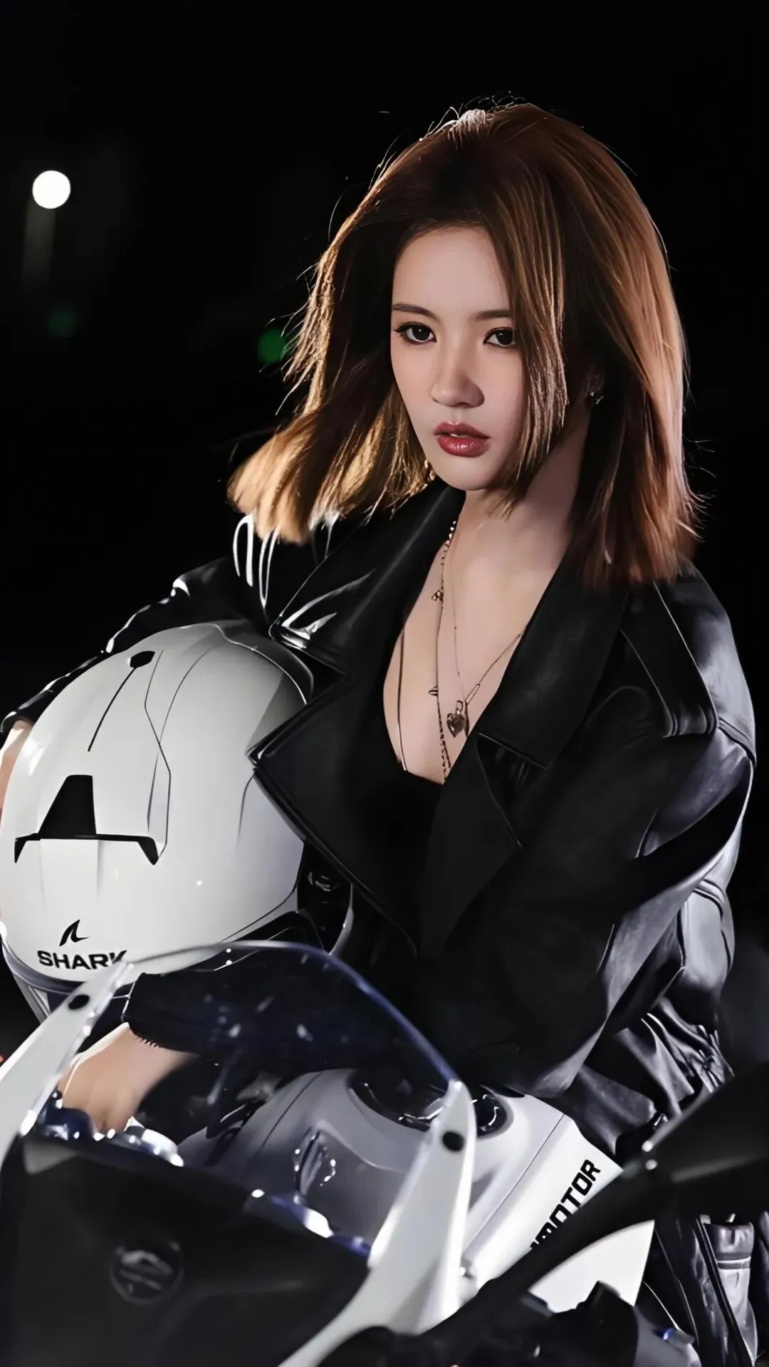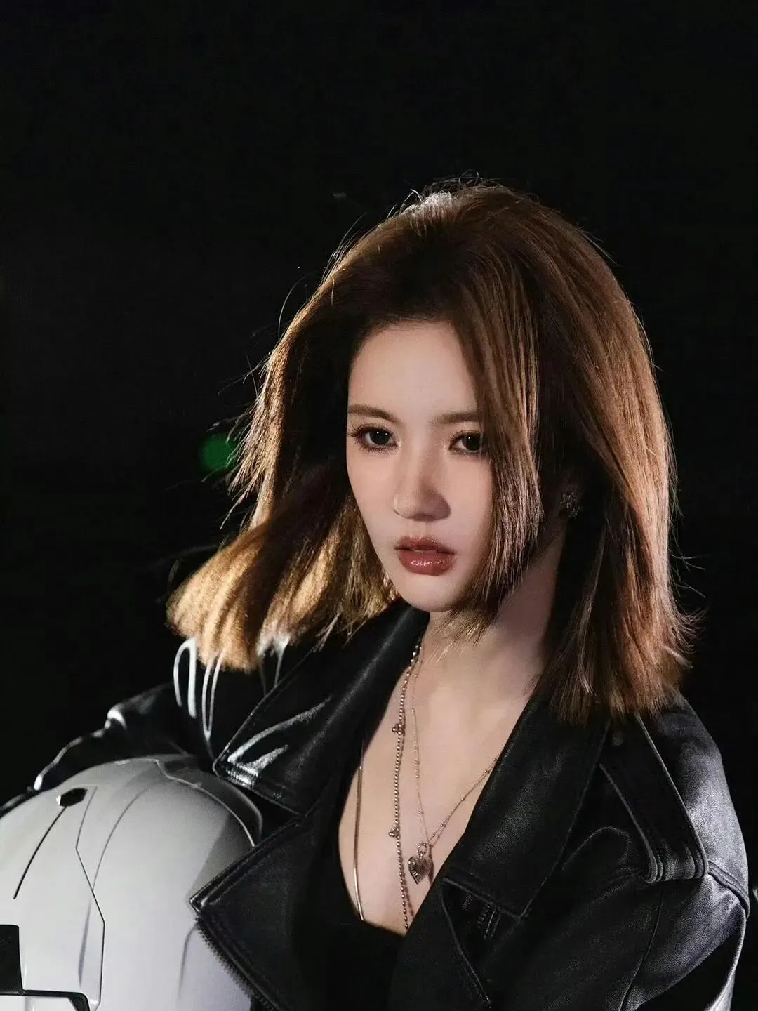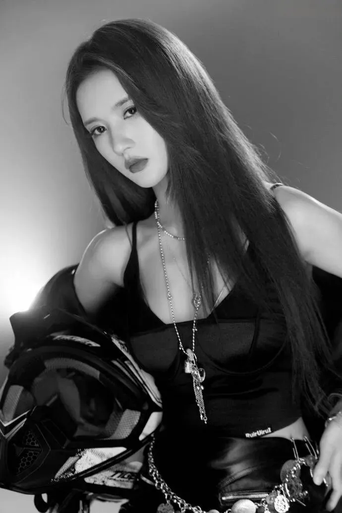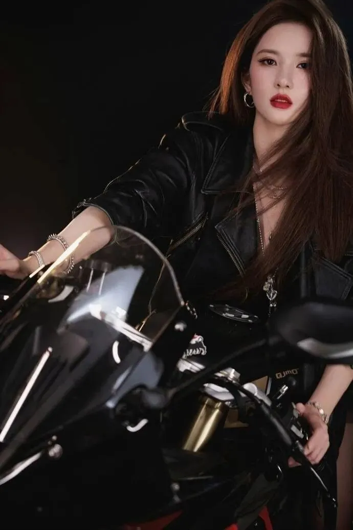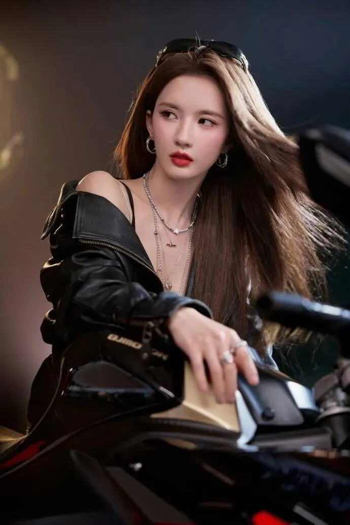 褪下甜美蓬蓬裙,换上修身黑皮衣的她,英气十足的侧颜搭配清冷坚毅的眼神,将女团成员的软糯与赛道之上的热血完美杂糅。