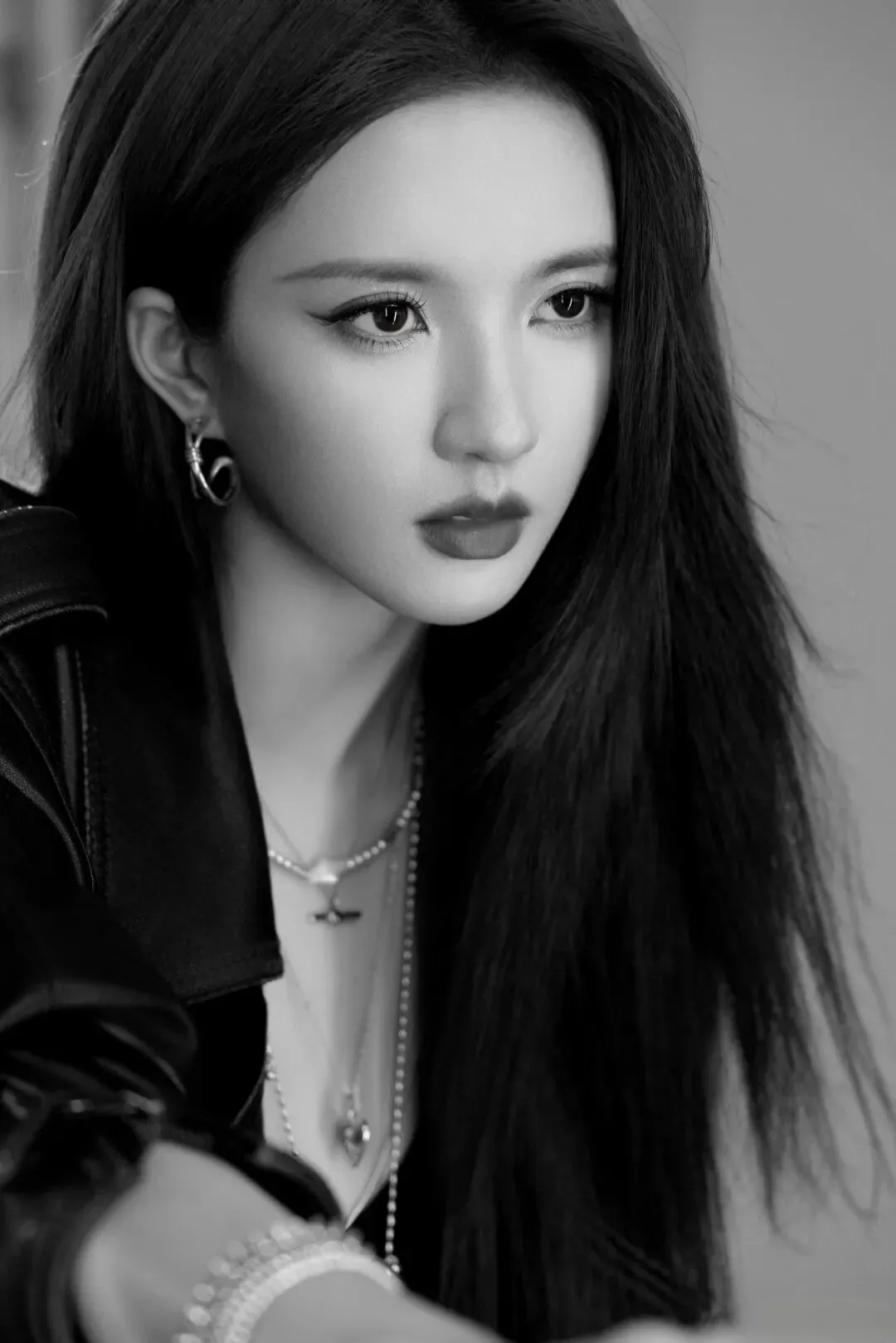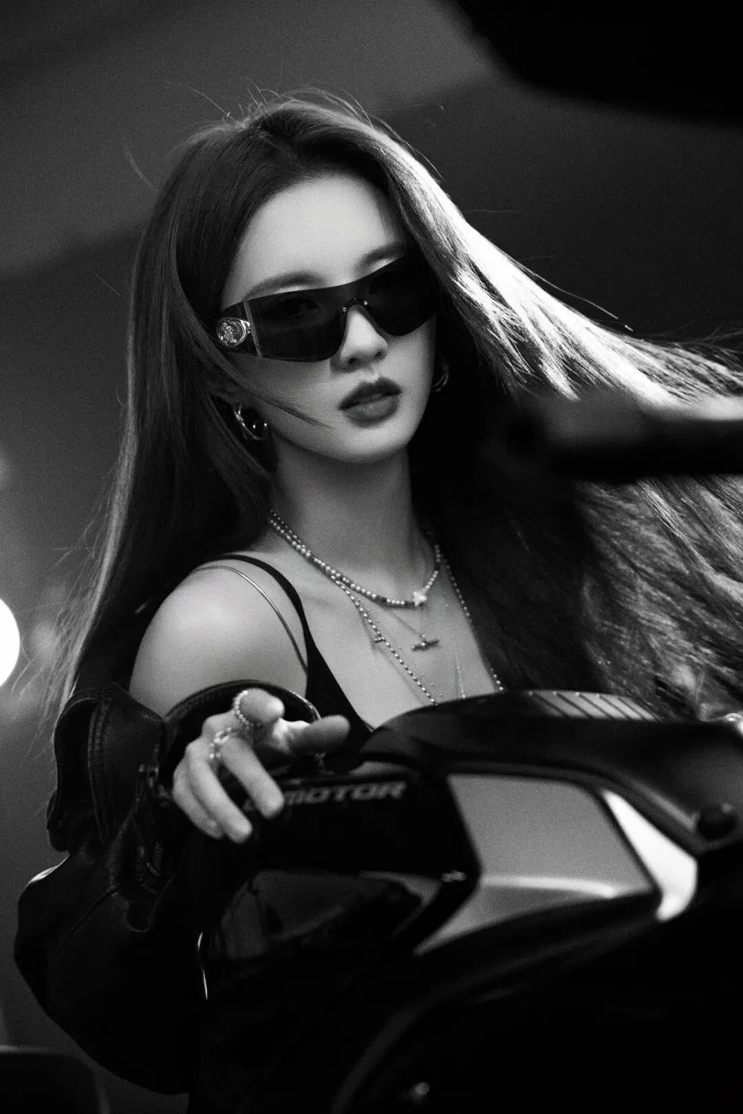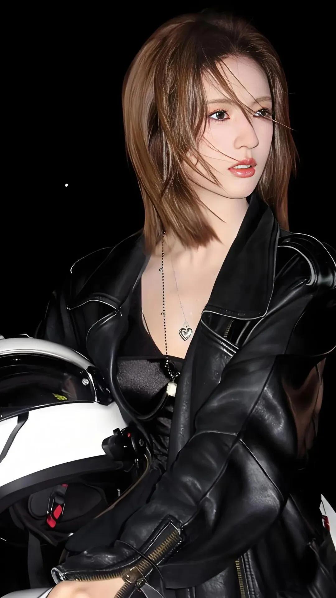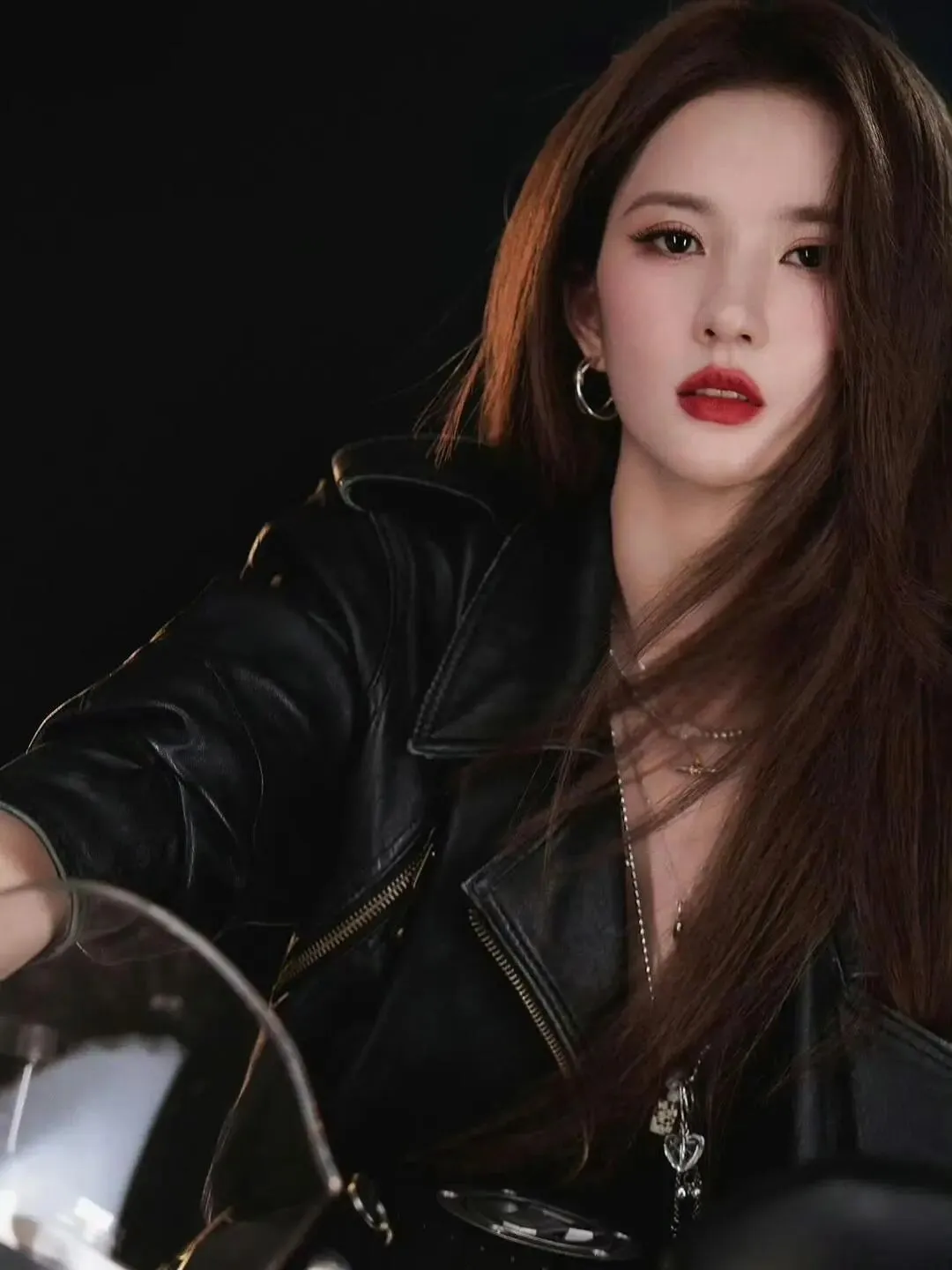 褪下甜美蓬蓬裙,换上修身黑皮衣的她,英气十足的侧颜搭配清冷坚毅的眼神,将女团成员的软糯与赛道之上的热血完美杂糅。