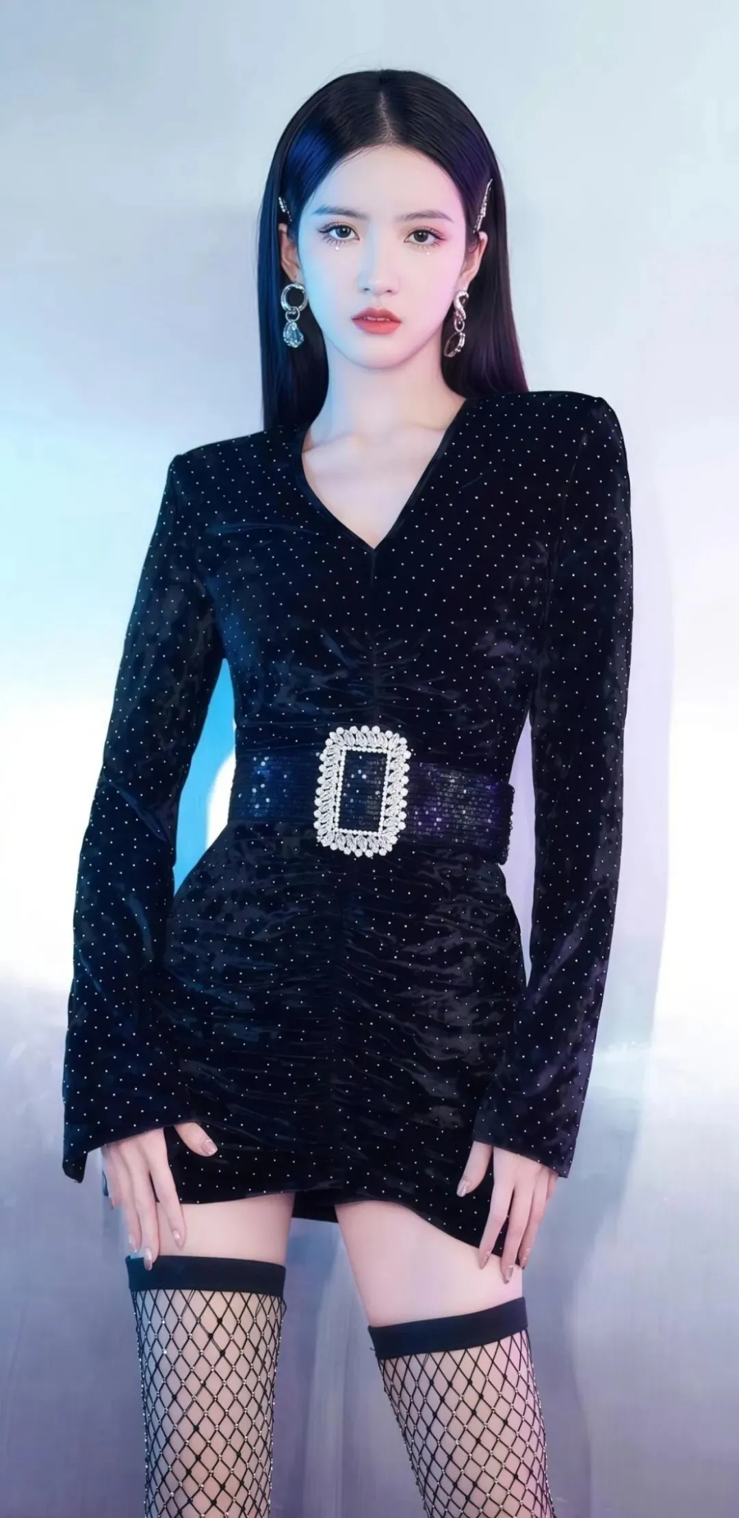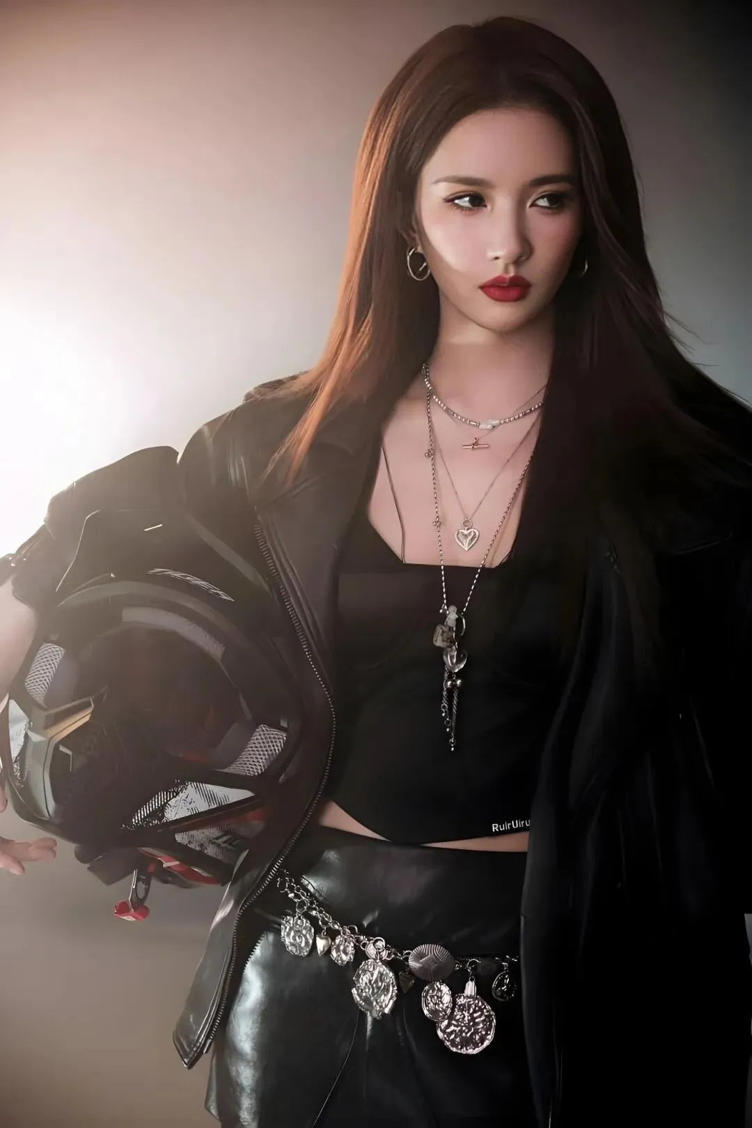 正是这种藏在甜美外表下的反差性格,让她完美驾驭了兼具金属摇滚感与青春活力的穿搭。
