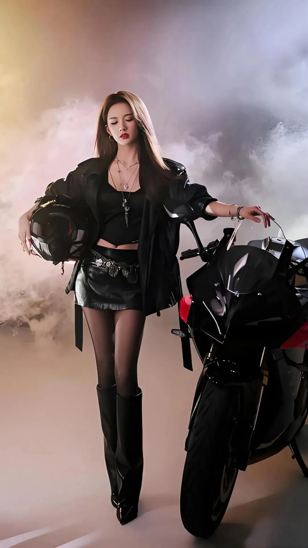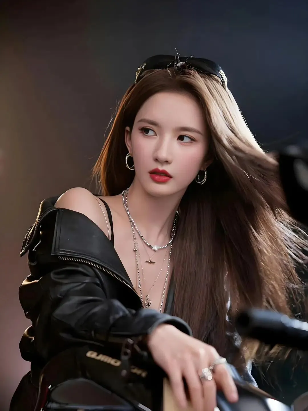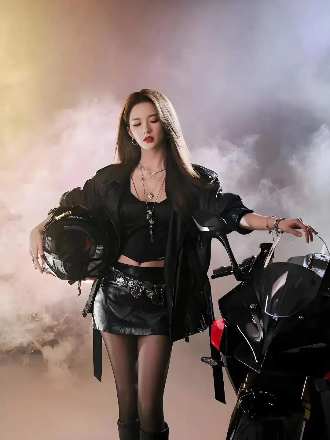 高扎的马尾与酷炫的机车皮衣,让她瞬间化身又拽又仙的甜酷“炸街”少女。