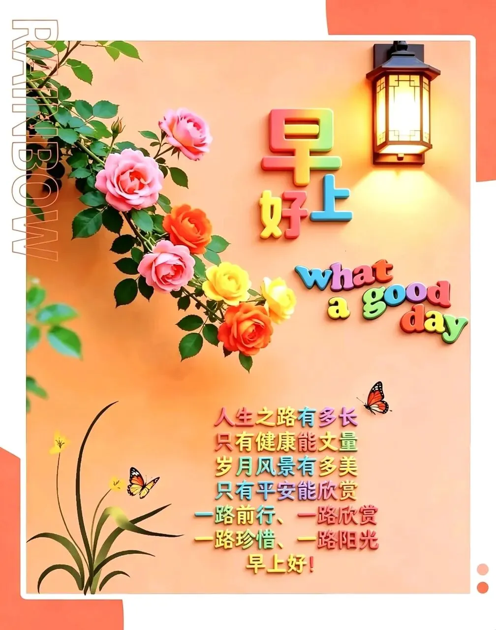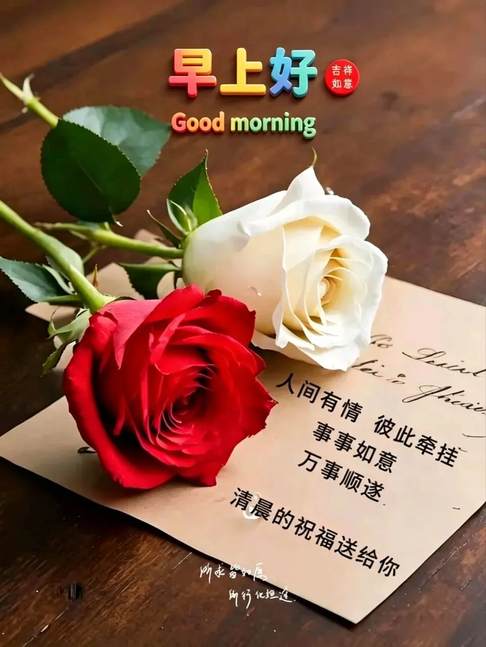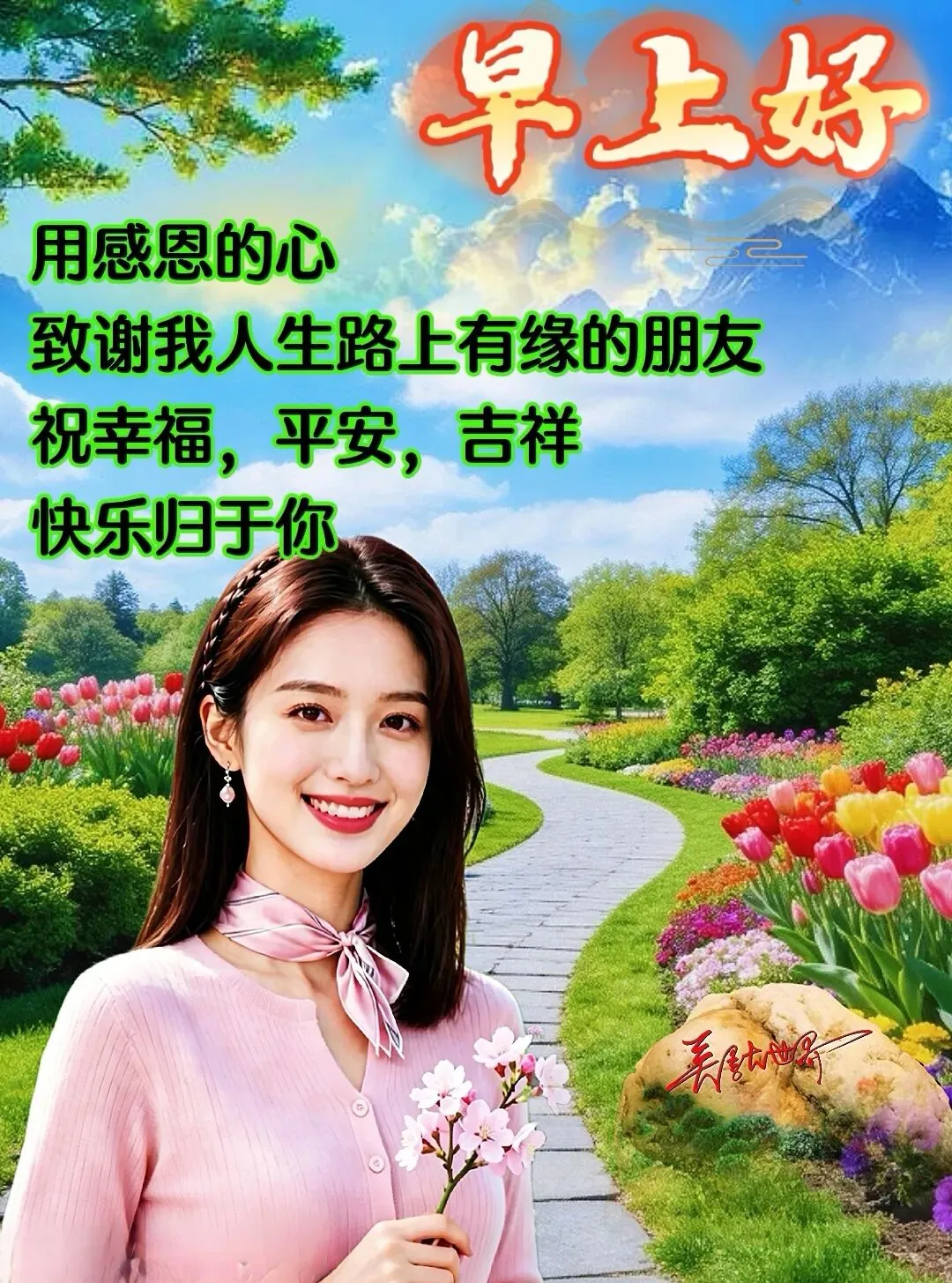 清晨一声问候,抚平所有忙碌。岁月一分陪伴,走过所有风雨。愿你平安健康是福气,快乐幸福是底气,事事顺利是运气。安!🙏🍀🌼🍒