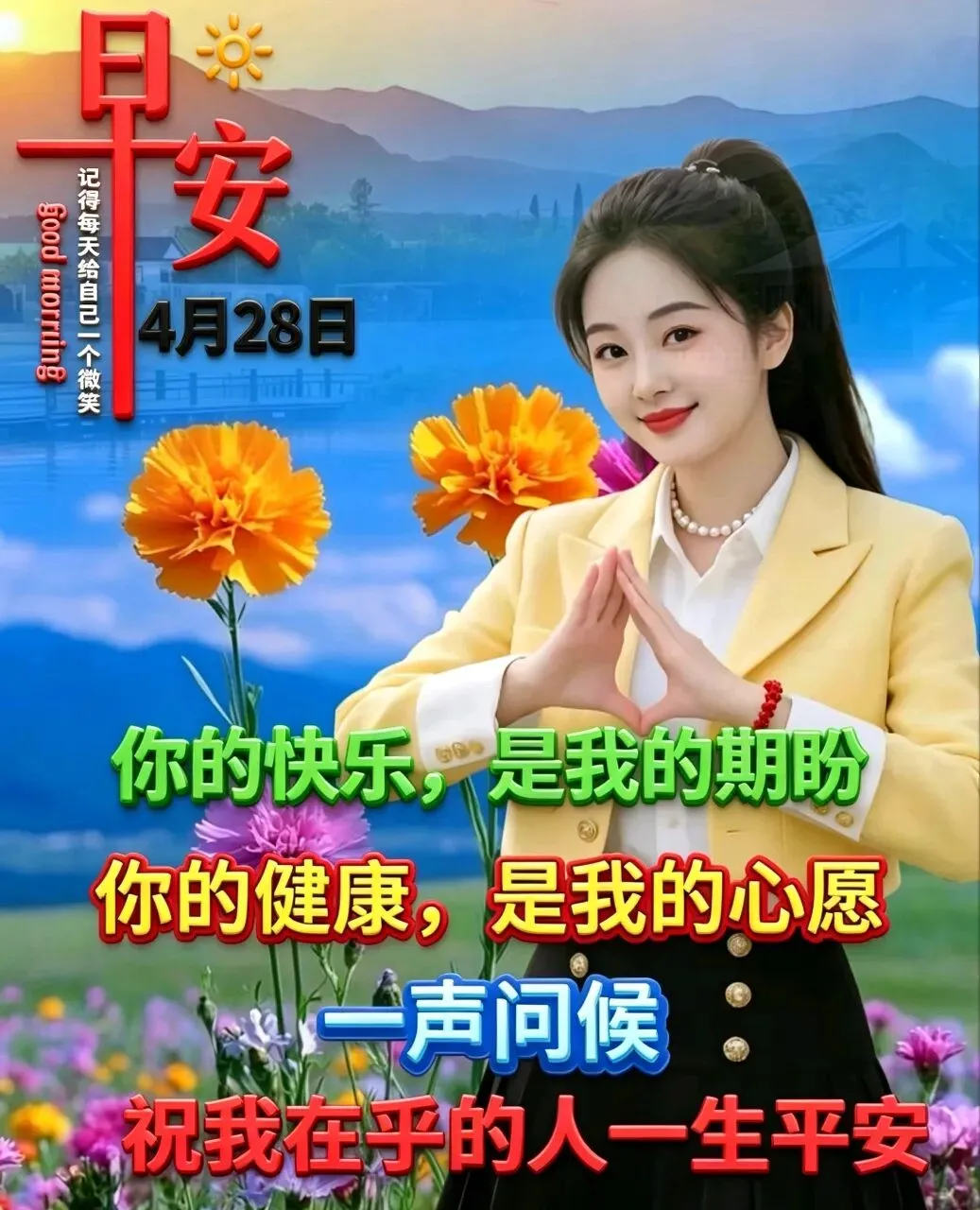 当前位置:首页>美女资讯>4月28日~最美祝福语图片精选,清晨一声早,愿你样样好!