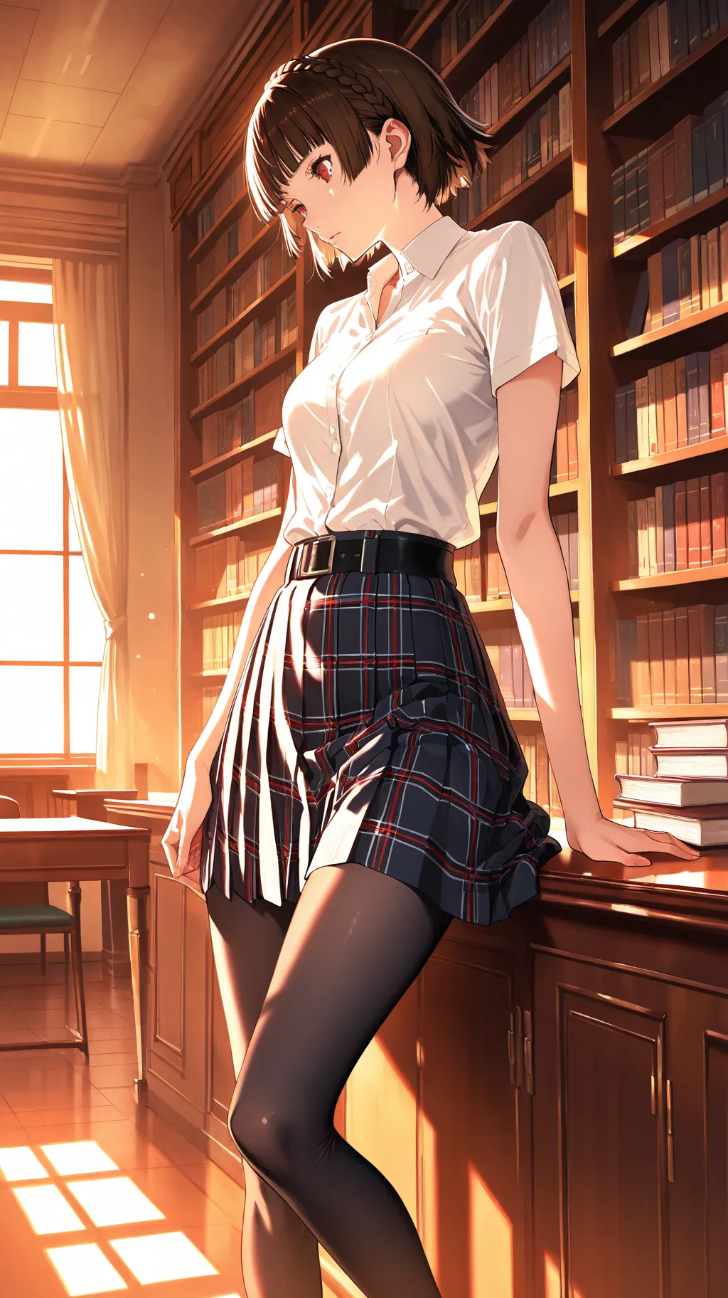 在《女神异闻录5》的怪盗团中,新岛真(代号Queen)是那个以理性与力量并存的智将。作为秀尽学园的学生会长,她留着标志性的棕色短发,日常以严谨的制服造型示人,眼神中透着与年龄不符的沉稳。她并非天生叛逆,却因对正义的执着,从遵守规则的好学生蜕变为打破扭曲的怪盗——这份转变,源于她对姐姐(检察官新岛冴)的复杂情感,也源于对校园与社会不公的清醒认知。