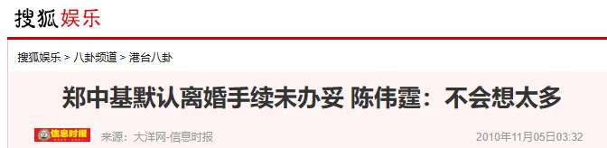 阿Sa被骂,当时的男友陈伟霆也不会好过,他成了港媒追逐的对象。尤其是郑中基和阿Sa离婚手续还没办好,让他的身份很尴尬。