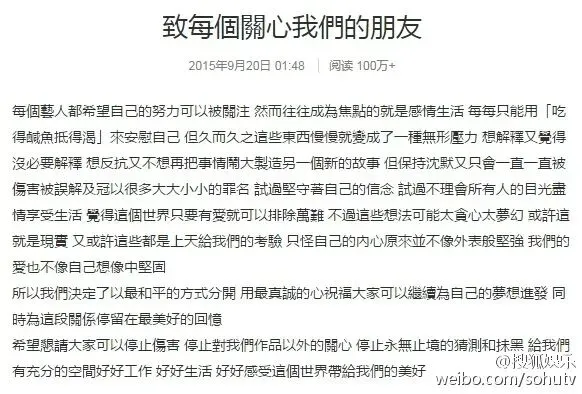 但正值事业上升期的弟弟,和事业停滞的姐姐,聚少离多不说,话题也愈来愈少,中间再夹杂着粉丝骂来骂去,最终,他们在2015年9月20日官宣分手。