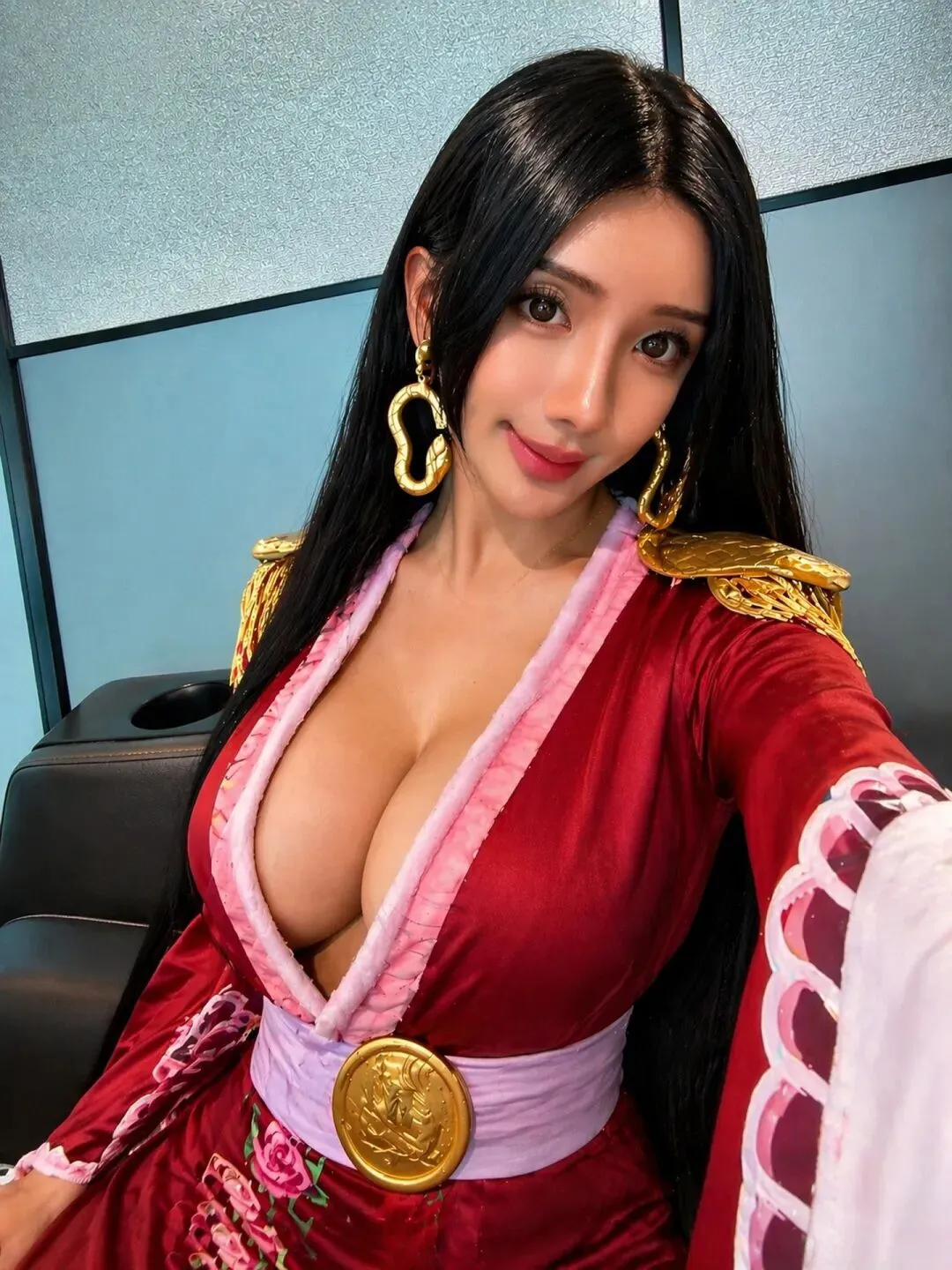 这次畇安再度挑战了蛇姬的黑色长发,金发的她看起来狂野,但黑发色的她看起来则多了一种成熟女人的魅惑感,真的就是三次元的波雅·汉考克,服装也是蛇姬的招牌深V,让她的丰满美灯呼之欲出,让人看了鼻血都快喷出来啦!