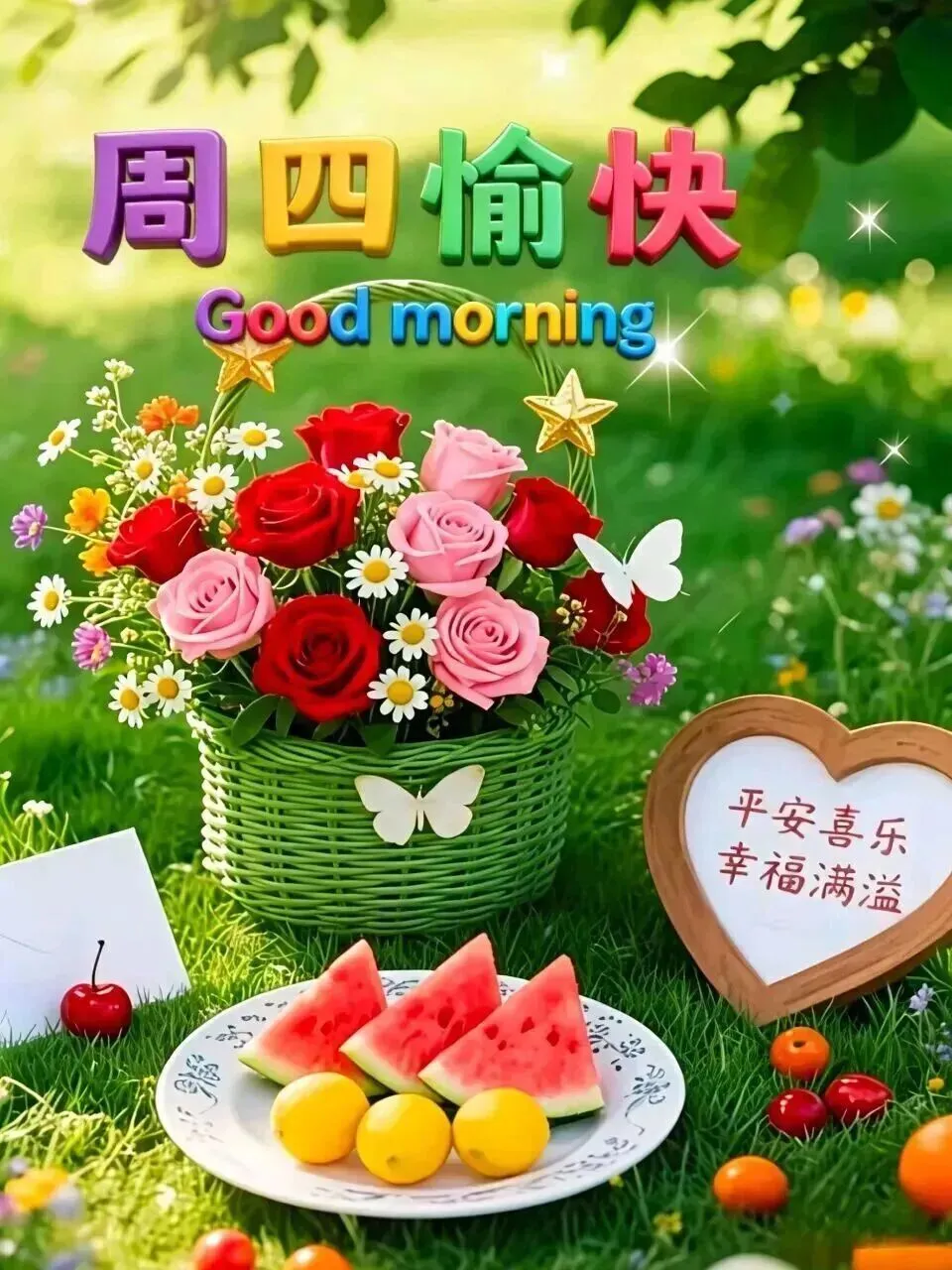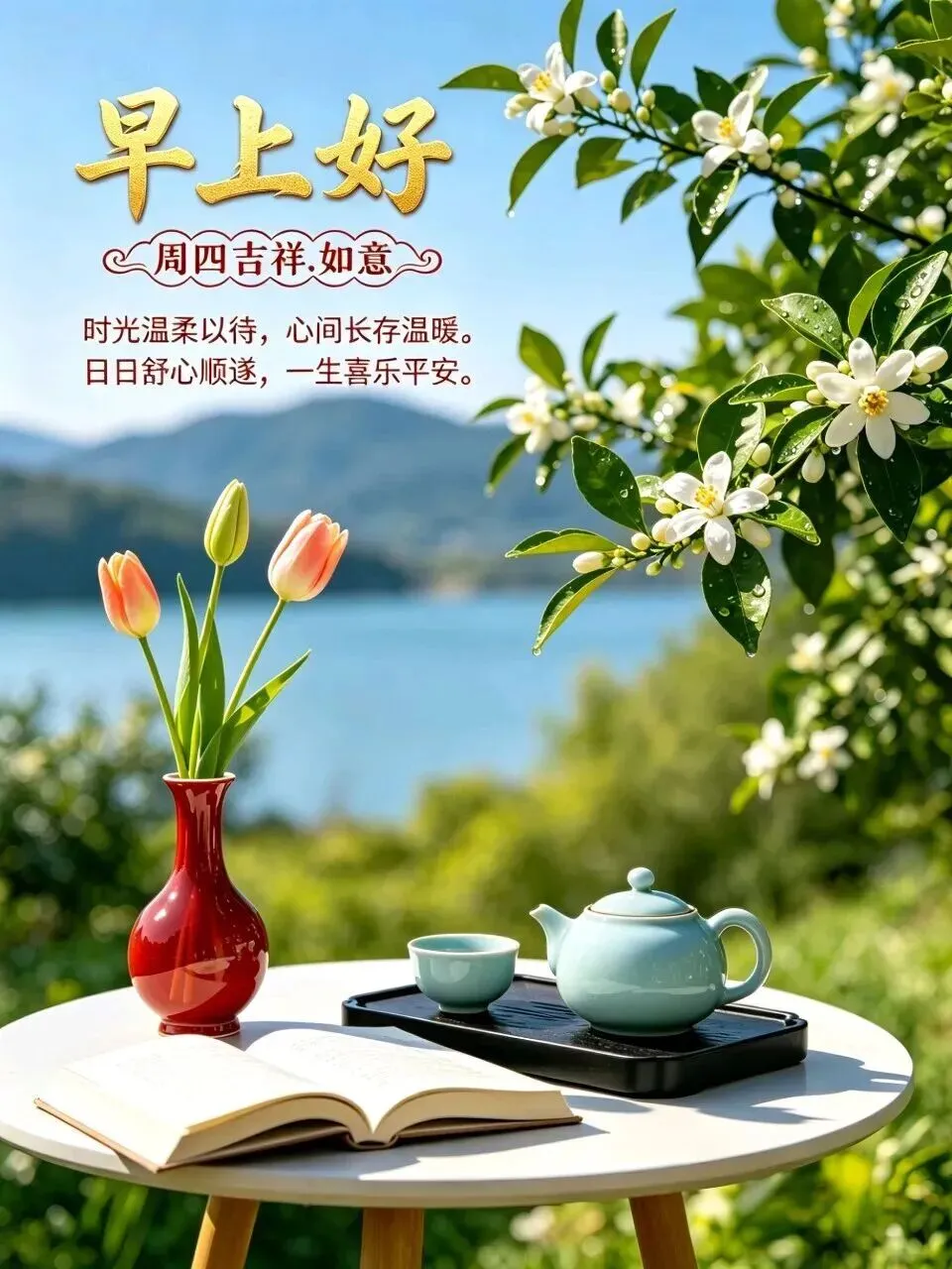 周四早安!生活一半发现🌿,一半藏尽美好🍎。慢品人间烟火🍵,静赏朝夕风光🌤️。看淡世事纷扰🍃,坚守澄澈本心✨。目光所遇皆暖🌟,日日安然舒心。