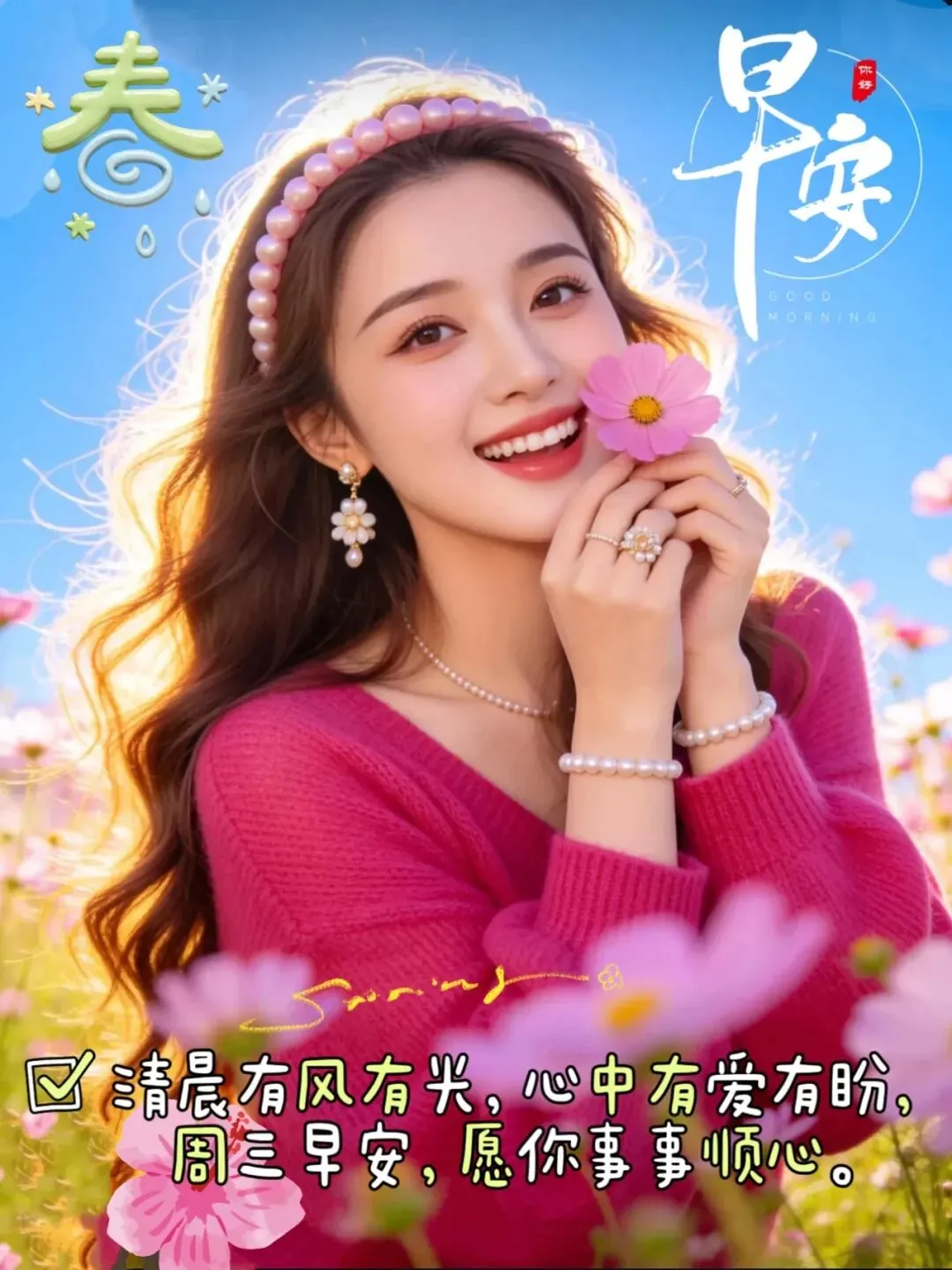 春风不语🍃,却滋养万物;问候不多💬,却装满真心。愿晨光治愈所有烦恼,愿岁月安稳,生活美满,一天更比一天顺心!