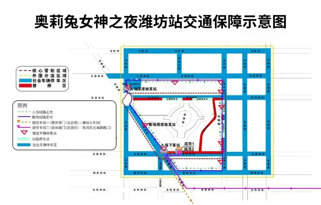 1.核心管制区域潍坊奥体公园院内及奥体东路、北宫西街(安顺路至清平路)北半幅路段、卧龙西街(安顺路至清平路)南半幅路段、清平路(卧龙西街至北宫西街)西半幅路段。