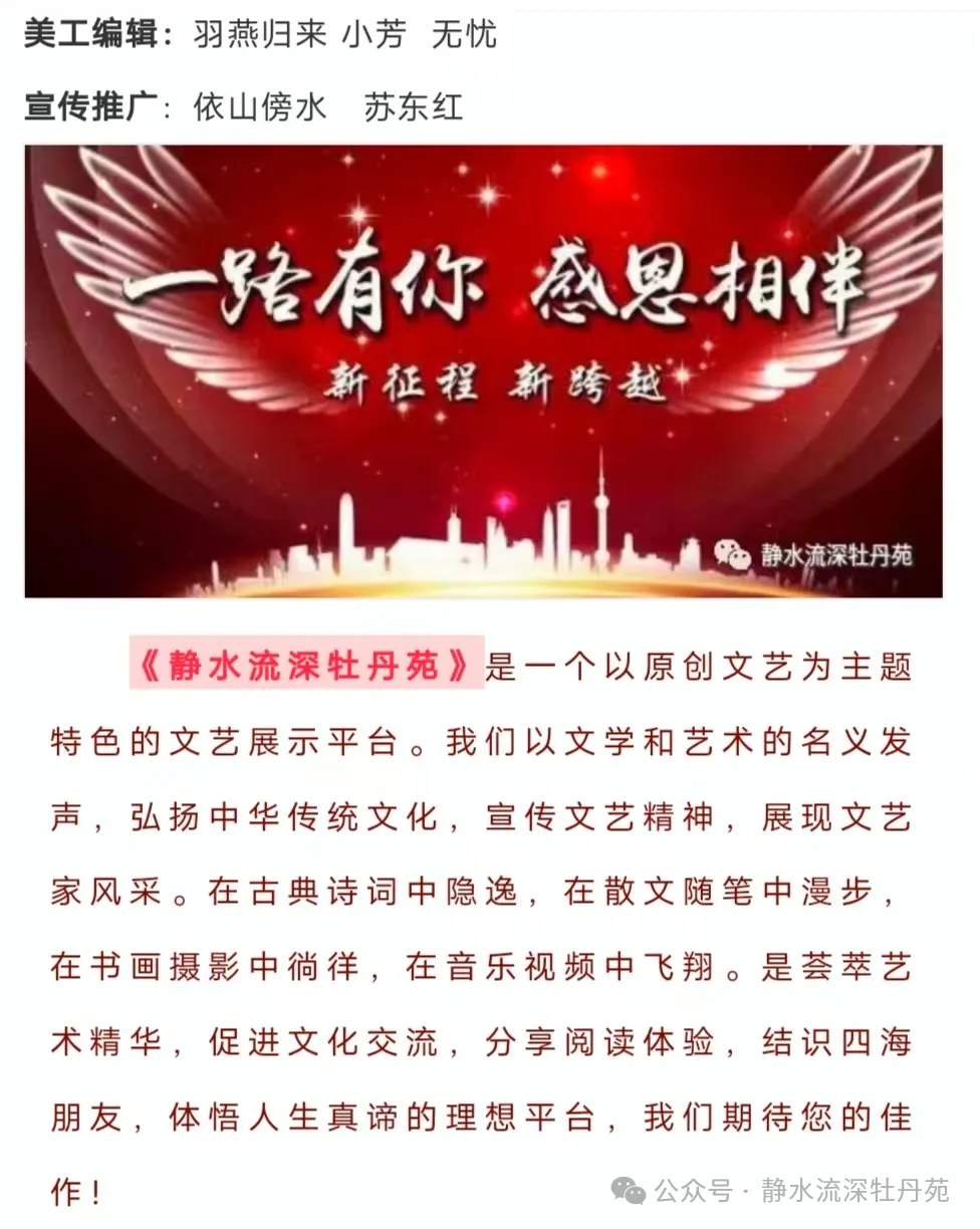 投稿前先关注“静水流深牡丹苑”微信公众号:jslsmdy2018 ,投稿加总监微信jzmd2018 。附带作者简介和生活照一张。