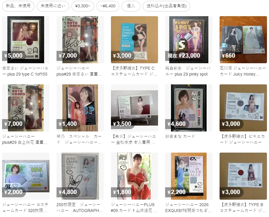 目前女神卡最大的品牌商JUICY HONEY已经签约了近2000名各时期的性感女神,收藏卡的品类也是逐年拓展出各式各样的新品,但是如果你真的想“一发入魂”靠一包就开出“衣料卡”、“亲签卡”、甚至“DNA卡”的话,那实在是需要极大的欧气,因为这类收藏卡的玩法与传统集换式卡牌一样,各种限定特卡都是配比封装的,基本上整箱才有一张限编特卡。