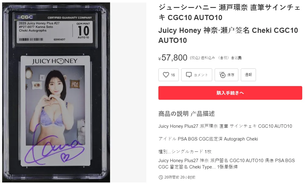 随着JUICY HONEY系列等一众该类收藏卡的逐渐爆火,全球各大评级公司也是纷纷开通了专属板块的评级鉴定与签字鉴定服务。现在你只需花费百元左右评级费用,就可以把女神们放入专属卡盒中永久密封珍藏。同时经过评级的女神卡更是可以获得更多的溢价空间,使其在二手市场中更受青睐。