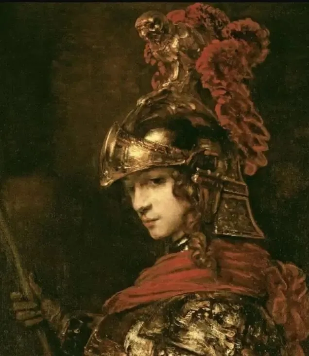 有“拥有湖蓝色眼睛的女神”(也就是绿色)之称的雅典娜,在此幅作品中身披华美金甲,上以女妖美杜莎的头颅做装饰:这是珀尔修斯送她的礼物,以感谢她对自己的帮助!PS:你看她手臂后面,那只神情警觉的猫头鹰,作为她的象征,正在观察你呢……