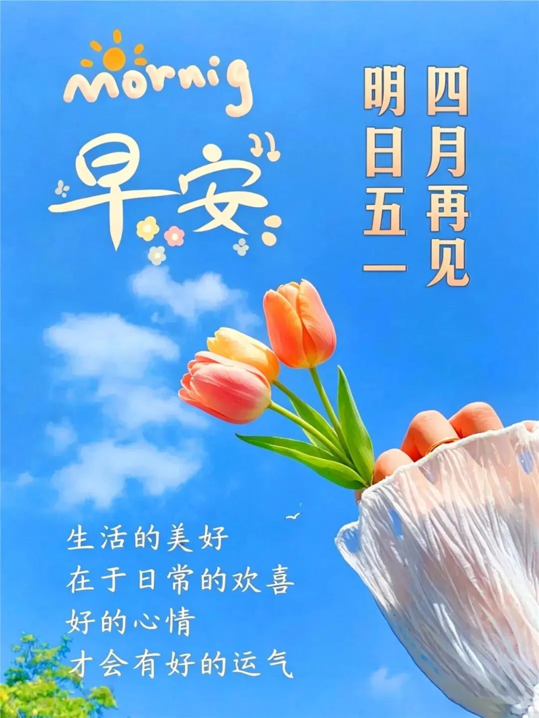 4月30日周四早安漂亮祝福图片,五月你好,愿幸福如影随形,健康伴您一生