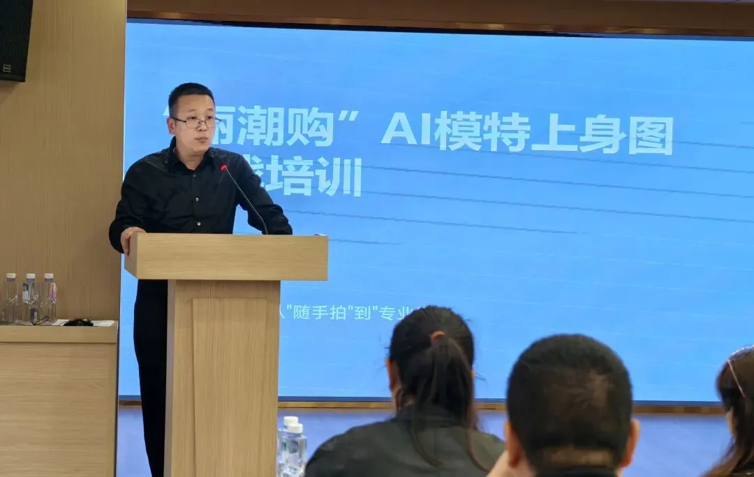 培训伊始,杭州环北丝绸服装城企划总监戴伟领先生指出,传统商拍模式存在成本高、流程繁、周期长等痛点,部分商户年商拍支出高昂,且易出现版型展示不佳等问题。本次培训聚焦 AI 生成模特图技术,旨在以轻量化、低成本的数智工具,为商户简化商品展示流程、优化宣传素材质量,助力商户拓宽接单渠道、提升市场竞争力,真正实现 “省时、省钱、高效” 的经营升级。