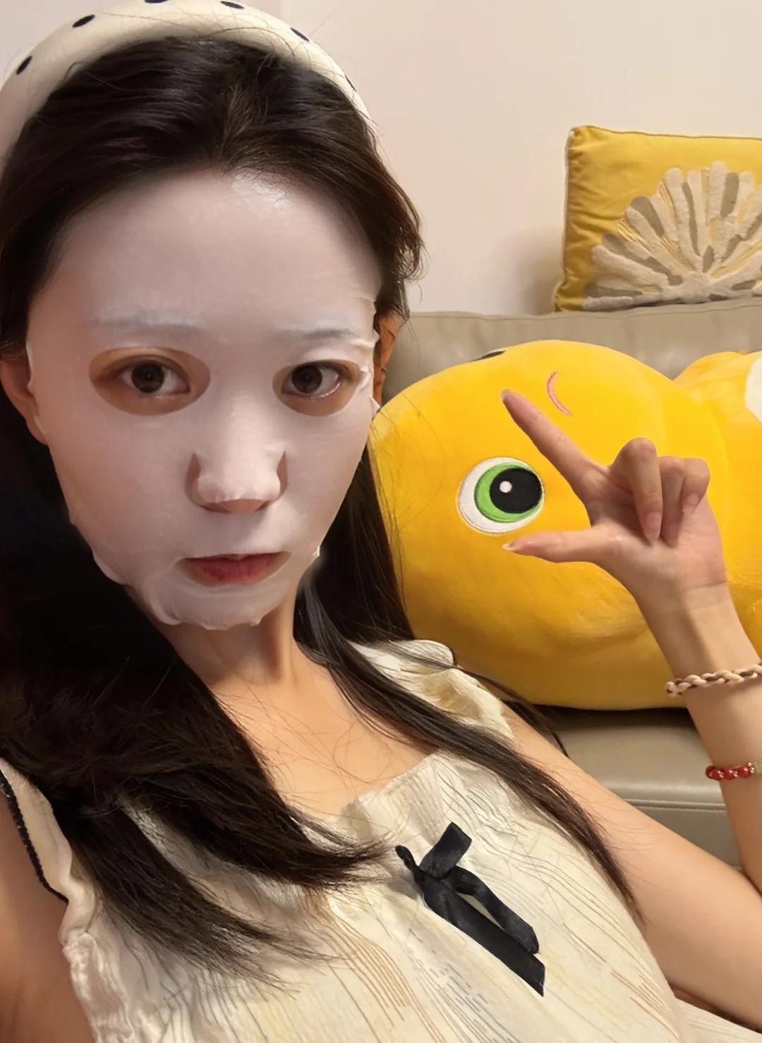 谁能想到上周拍摄到每天到凌晨3点\n太阳底下暴晒一整天 还能有这样子的肤色\n真的这个面膜救大命的,一周敷个2-3次\n上脸嗖嗖吸收~边补水边养底子,才不会被晒黑\n它的膜布也是很服帖\n敷着面膜做八段锦,精华一滴不淌!\n敷15分钟,整张脸从内而外透出细腻水光感\n现在脸比手要白多了,夏天必备面膜\n
