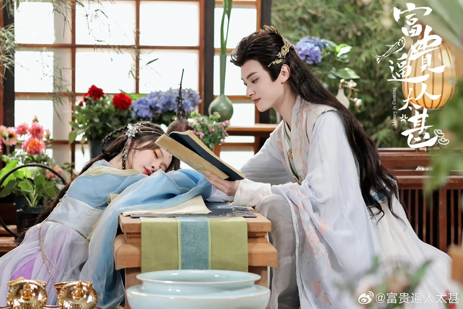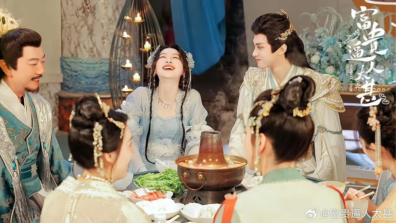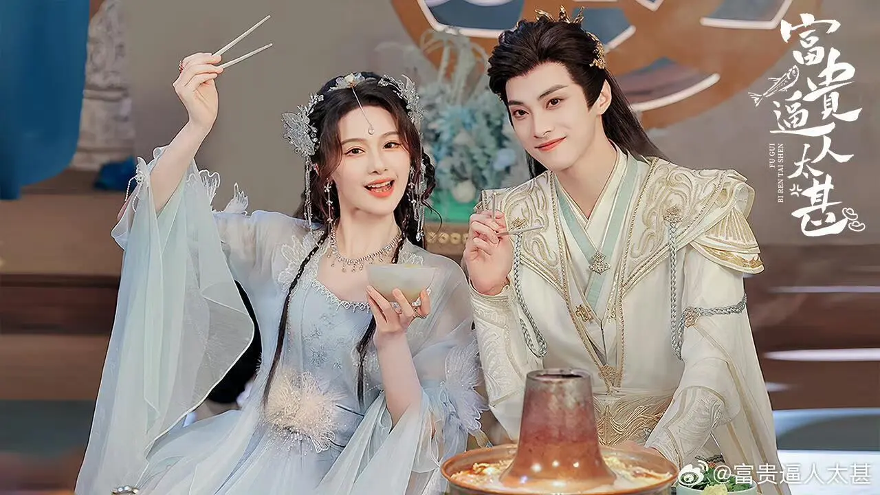 网剧还在更新,男女主好登对颜值超高妆造不错\n美强惨的太子男主,遇到命定之人、穿书而来变身促进“原著男女主”在一起的炮灰女配(郡主女主),一开始是因为发现她可以缓解自己毒发的痛感,所以主动邀请她为他治疗!却在相处过程心动不已,有意无意的撩她、纵容她、爱护她\n白富美的郡主女主为了摆脱原著小说既定的命运,不想当炮灰白白牺牲,主动与原著男主(三皇子)退婚,逃离皇城3年,又不得不回来,回去路上偶遇太子男主夜晚杀人丢尸,参加宴席无意撞见太子男主毒发发狂,虽然两次都被吓到,但是穿书女心态很好,自己消化掉了\n看到19集,男女主情感发展,没有误会,没有受虐,都长嘴,都直球!彼此吸引,互相救赎,展开一段剪不断理还乱的关系,最最最重要,太子男主真的极度宠溺郡主女主,互动画面超级甜\n#富贵逼人太甚电视剧\n#富贵逼人太甚