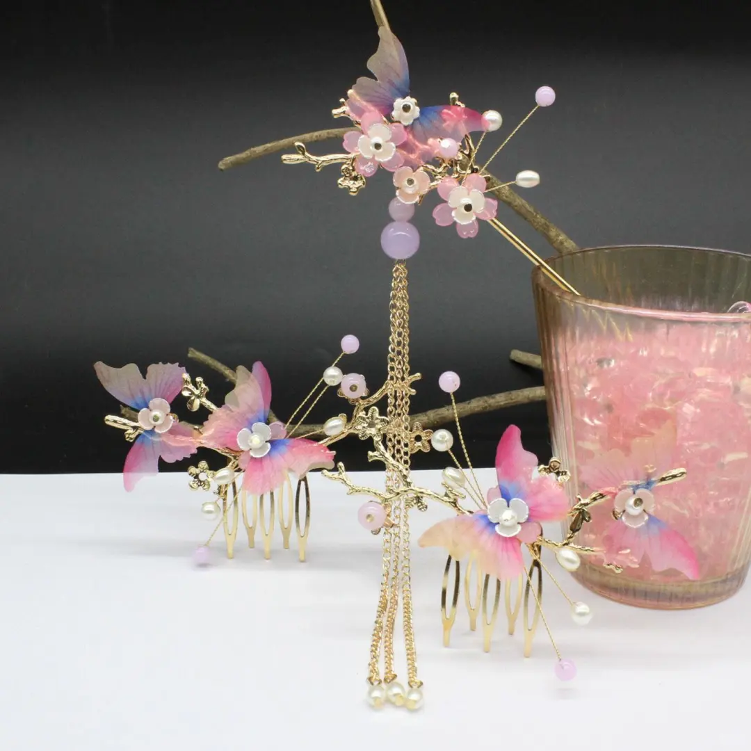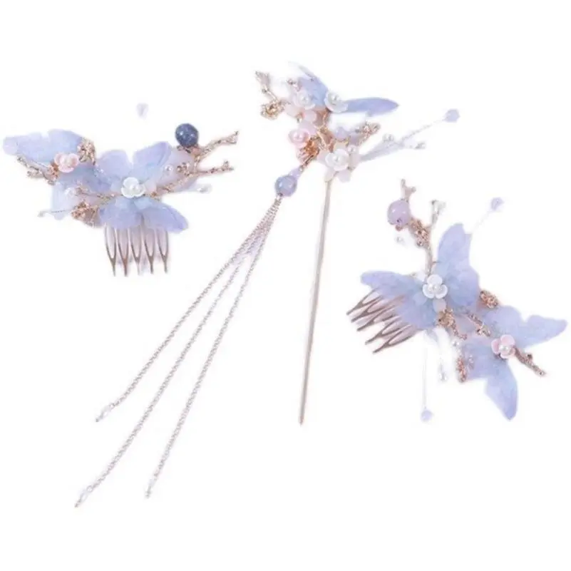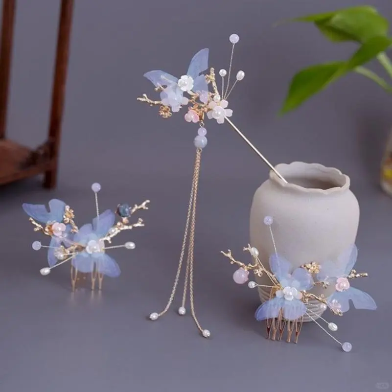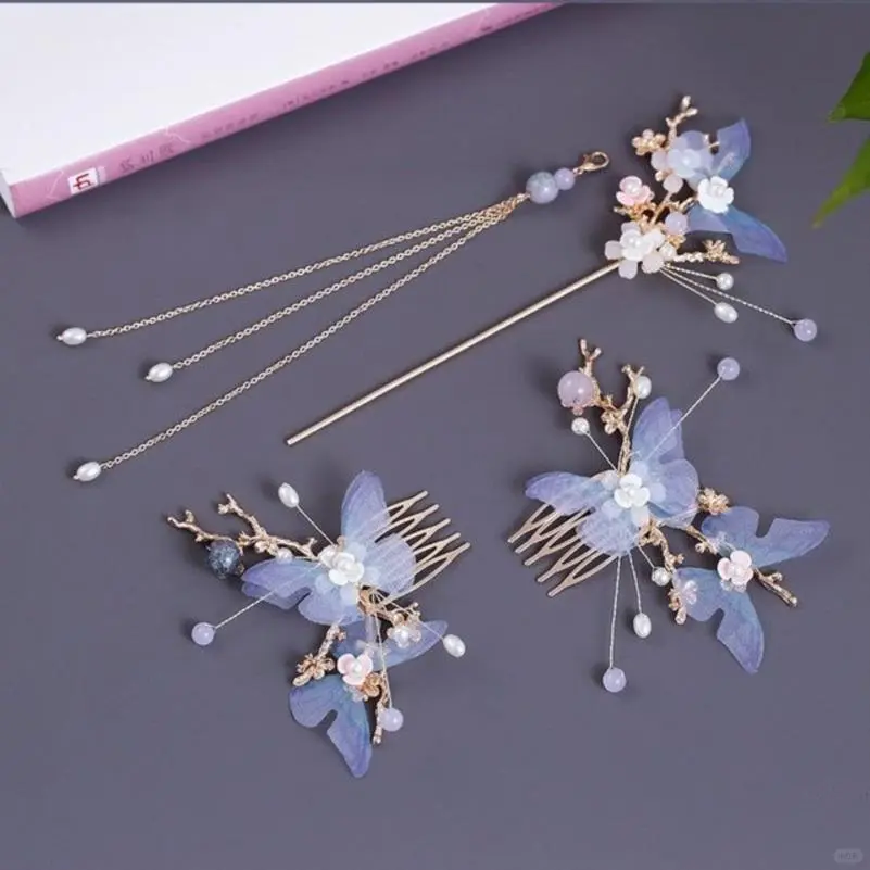 ✨古风发饰种草|汉服头饰女蝴蝶流苏发梳簪子全套明制步摇古装配饰品古风发饰套装