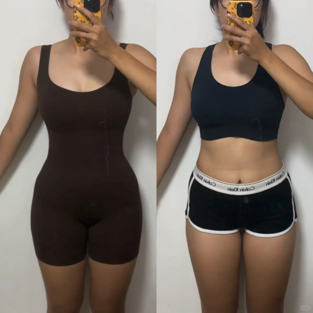 最近的穿搭都被这个塑身连体衣承包了!\n虽然平时也有训练,但是穿上这个塑身连体衣之后整个身型显得更加紧致!无痕设计可以当内搭,也可以有超多种不同风格日常搭配