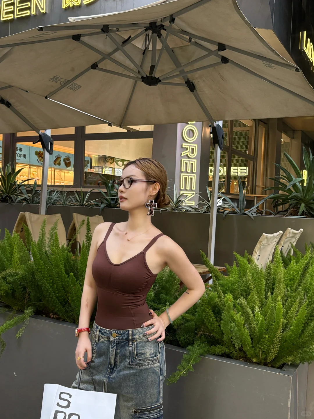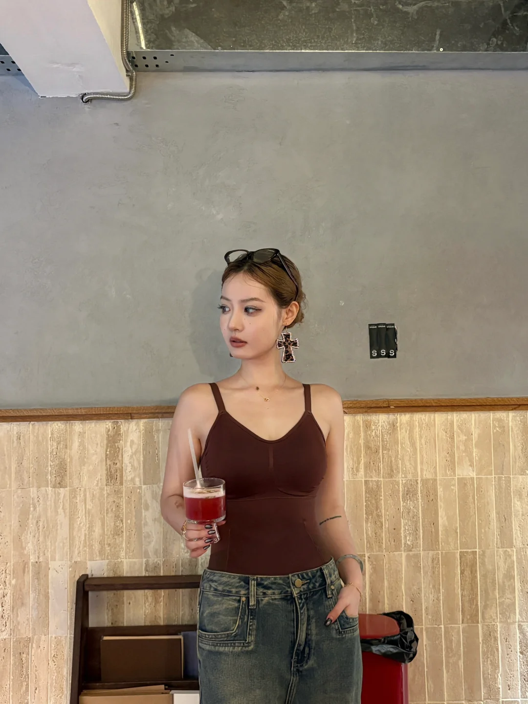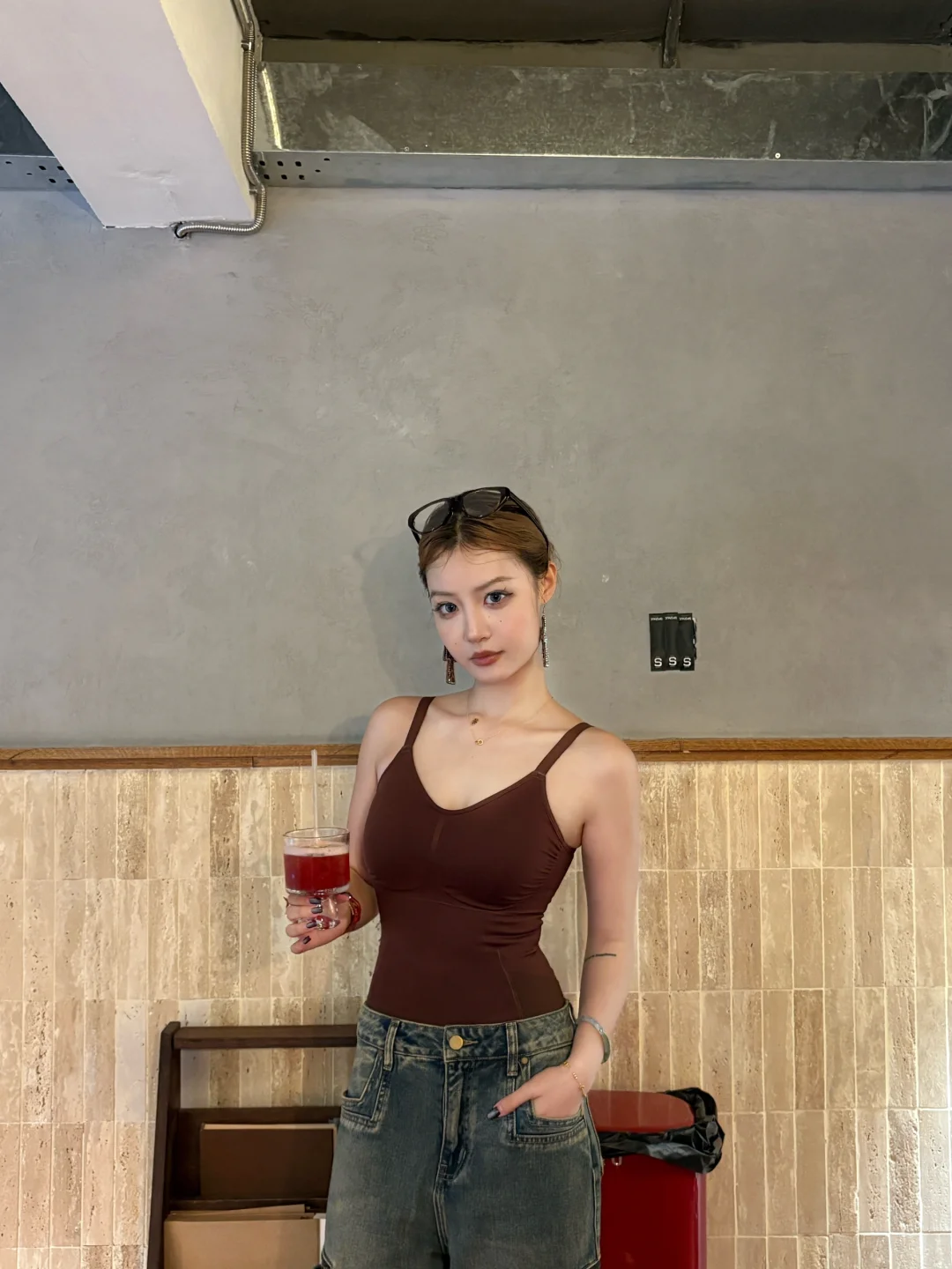 第一次知道连体衣还可以这么搭配!视觉上直接显瘦一圈,穿一下午也是毫无压力,新型的作弊神器,咖色直接get复古感\n#连体衣穿搭#健身穿搭 #我的运动日常 #美式辣妹 #轻欧美妆#曲线主义 #曲线主义塑身衣 #曲线主义黑巧塑身衣 #曲线主义黑巧连体衣
