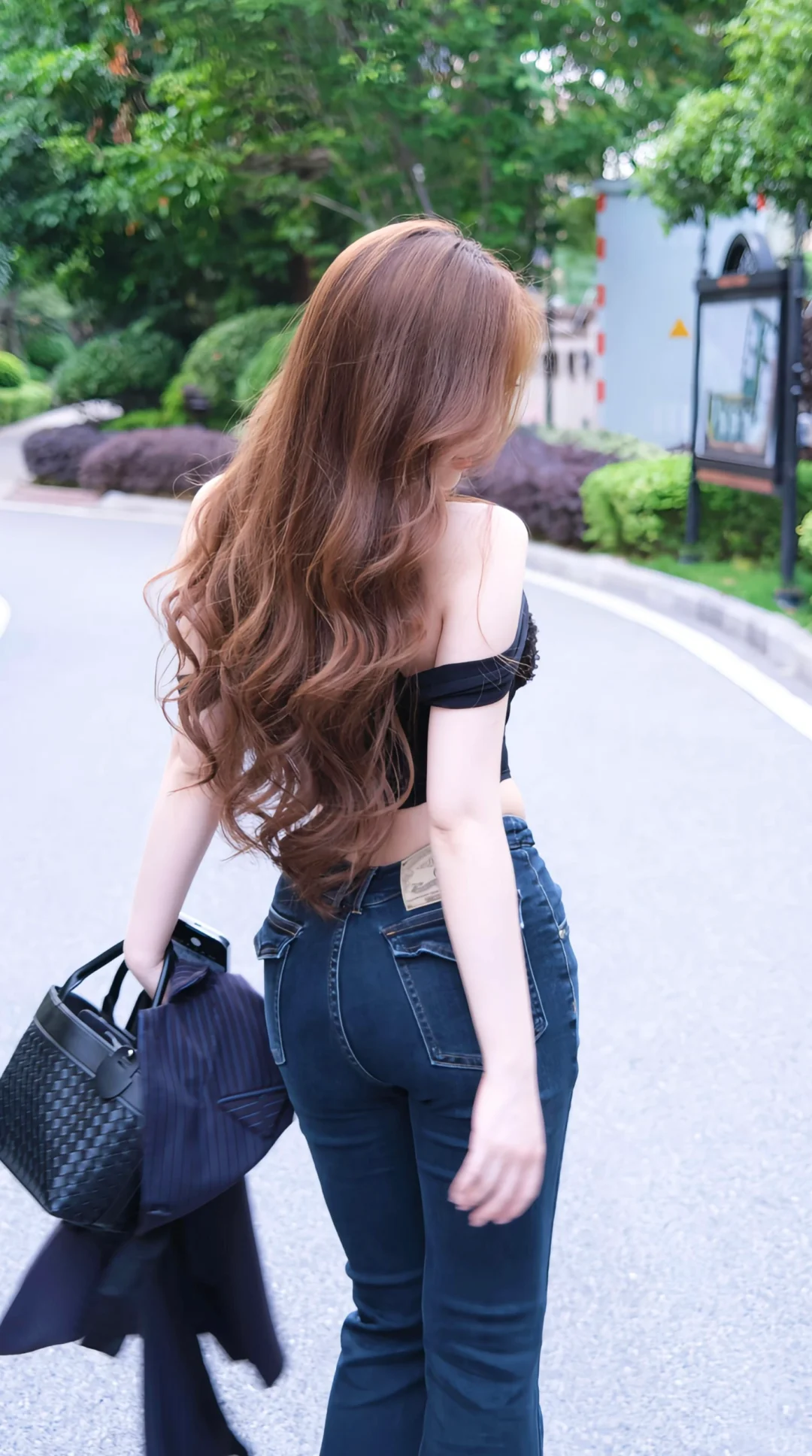 长发高跟牛仔裤