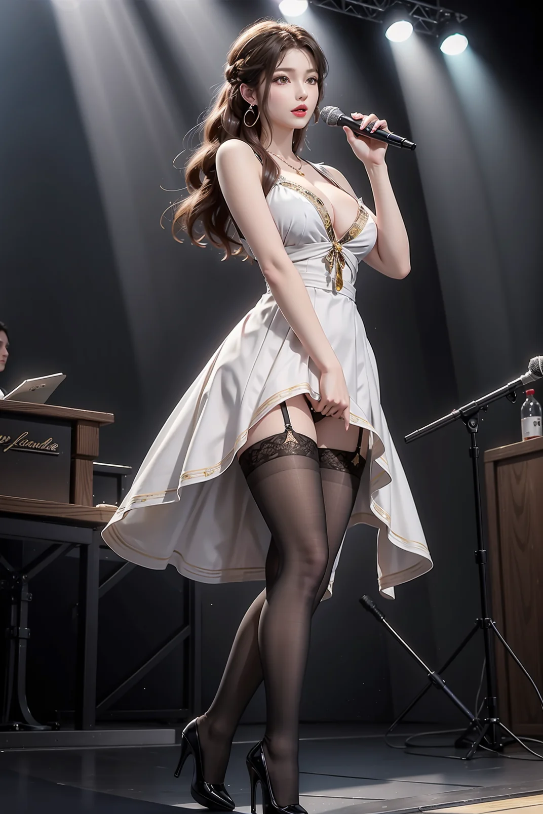 长发高跟牛仔裤