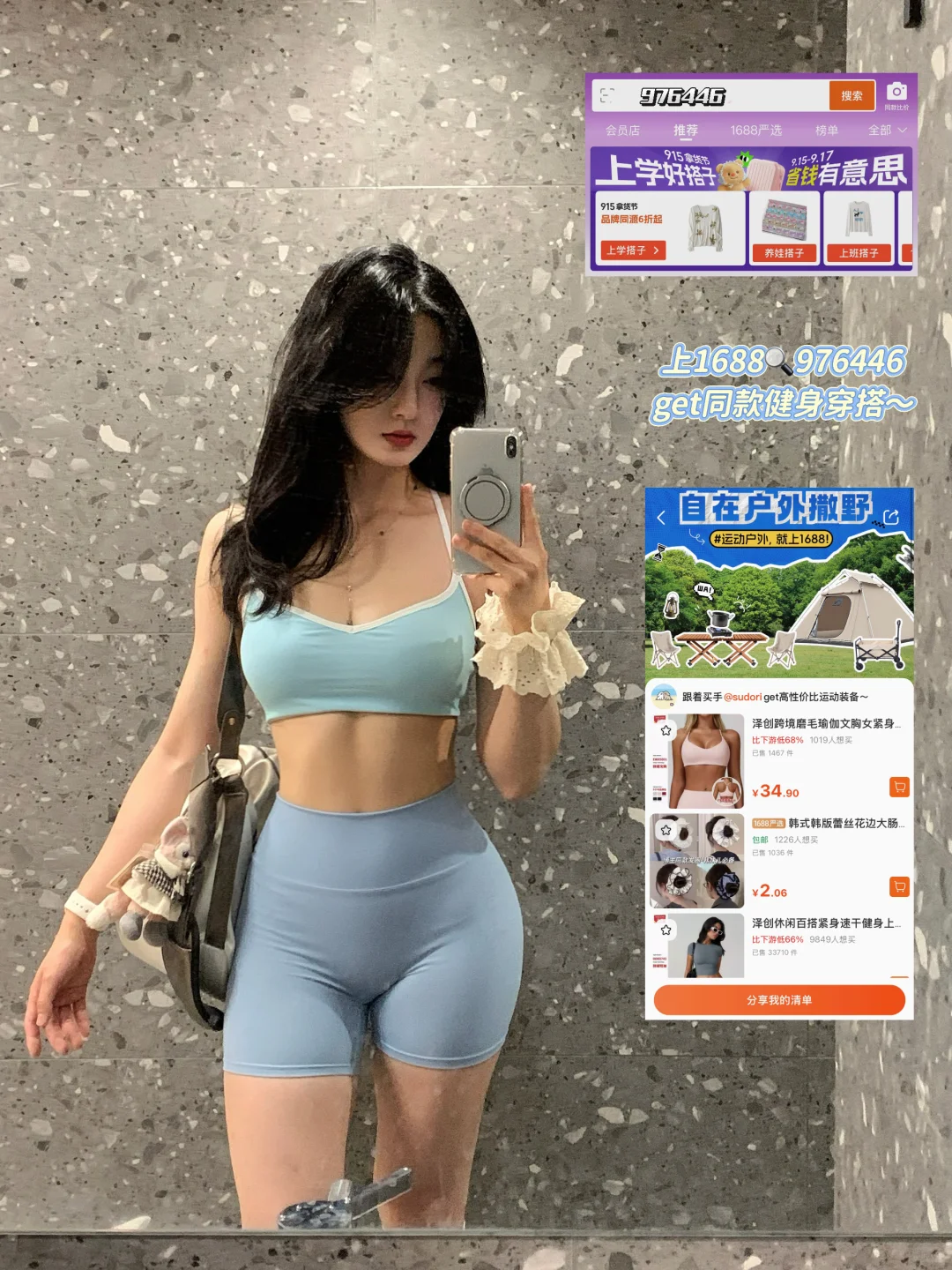 终于攒够了一期1688健身服分享~\n作为健身博主 一直会需要更新衣服\n也在不断尝试各种健身服款式\n每次训练都想穿得又舒服又好看\n所以我对健身服还挺挑的\n不仅要穿着好看、面料舒服\n还得透气不闷 做大动作也不勒不滑\n所以时不时就去1688“进货”\n有些是我反复穿反复洗的老款\n也有些新试的款 都是我用心淘来的\n并且实实在在穿去练过了 确实很不错\n关键一身加起来不到百元 性价比真的很高\n质感却一点不输品牌货\n这个价位能做到这个品质 说实话是有点惊喜的\n有需要的姐妹 1688🔍976446 就能get同款\n正好9/15-17拿货节 爆款源头价6折就能入手\nplus会员还有红包领 现在囤健身服很划算哦\n \n#我的健身日常 #健身穿搭 #精神氮泵 #健身女孩 #健身人健身魂 #见人不如健身 #健身的动力 #腰臀比 #fitcheck #咱们女人有力量 #1688生活搭子 #1688运动搭子 #1688上班搭子