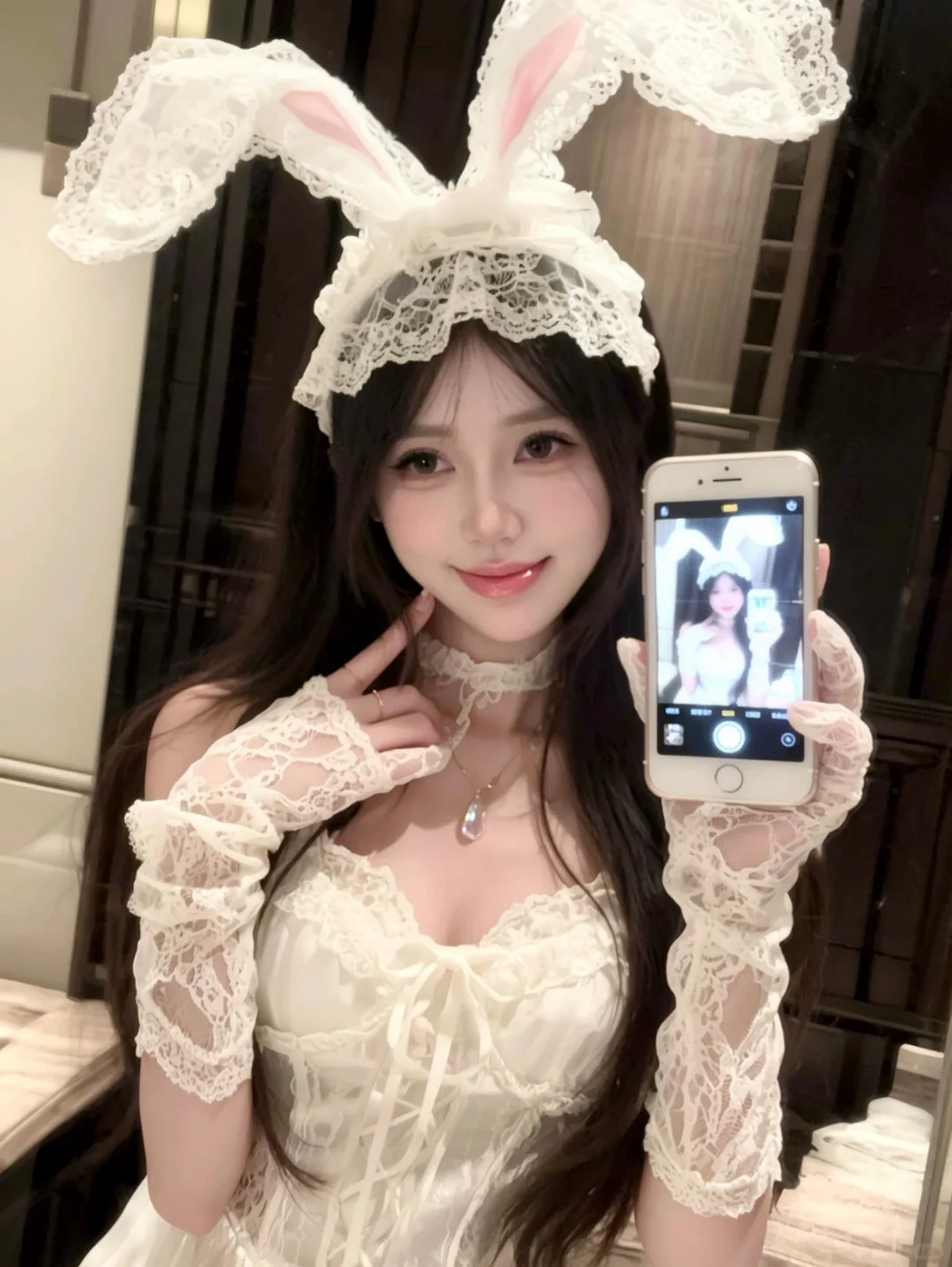 #ai兔耳蕾丝自拍