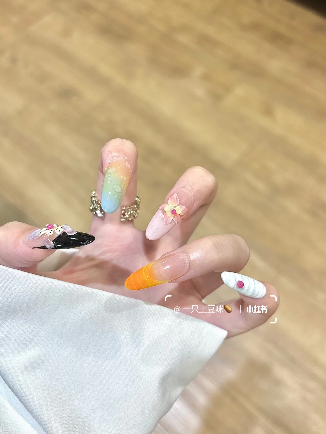 新美甲look🦋✨秋冬小众撞色晕染捏花美甲